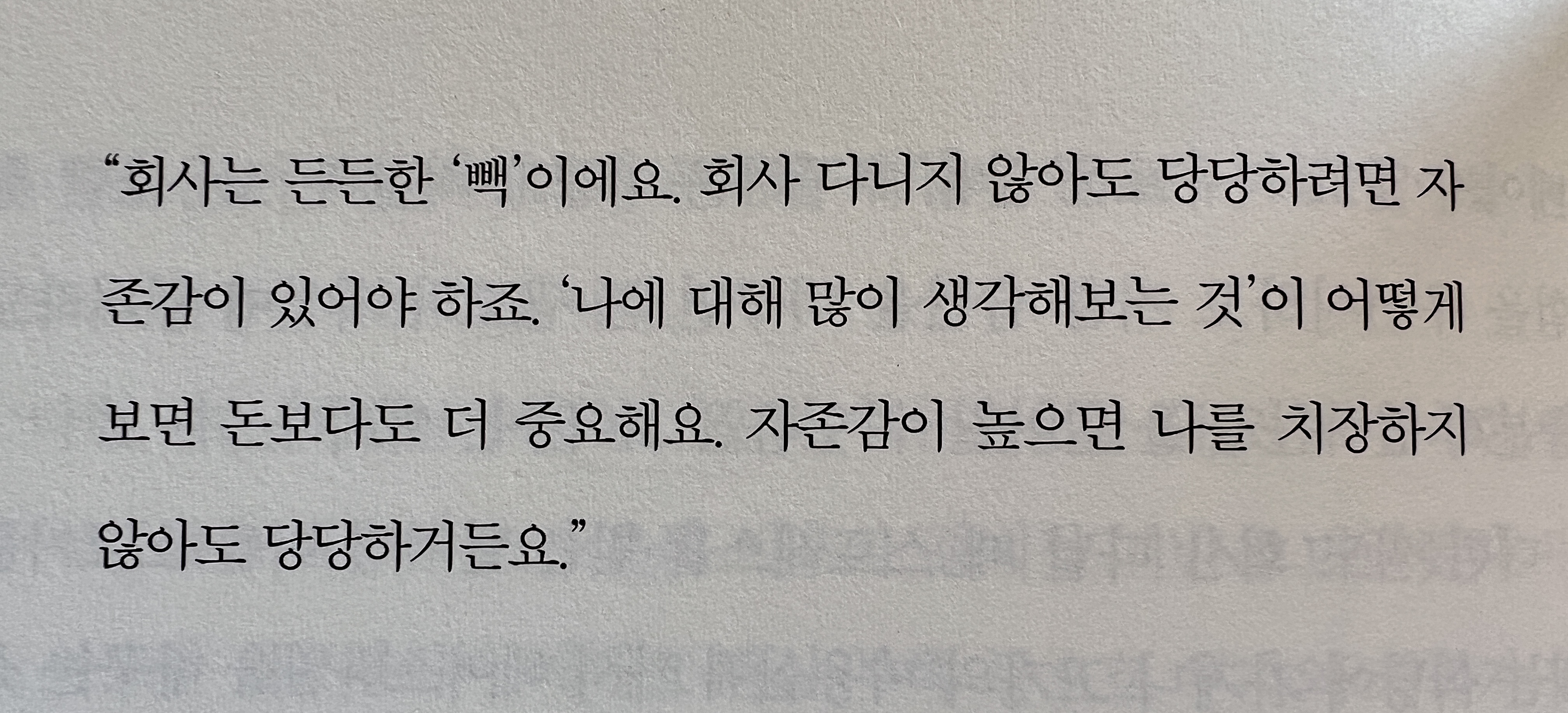 회사는 든든한 빽이고, 회사를 다니지 않고 그 명함과 직함이 없어도 당당하려면 자존감이 있어야 합니다.