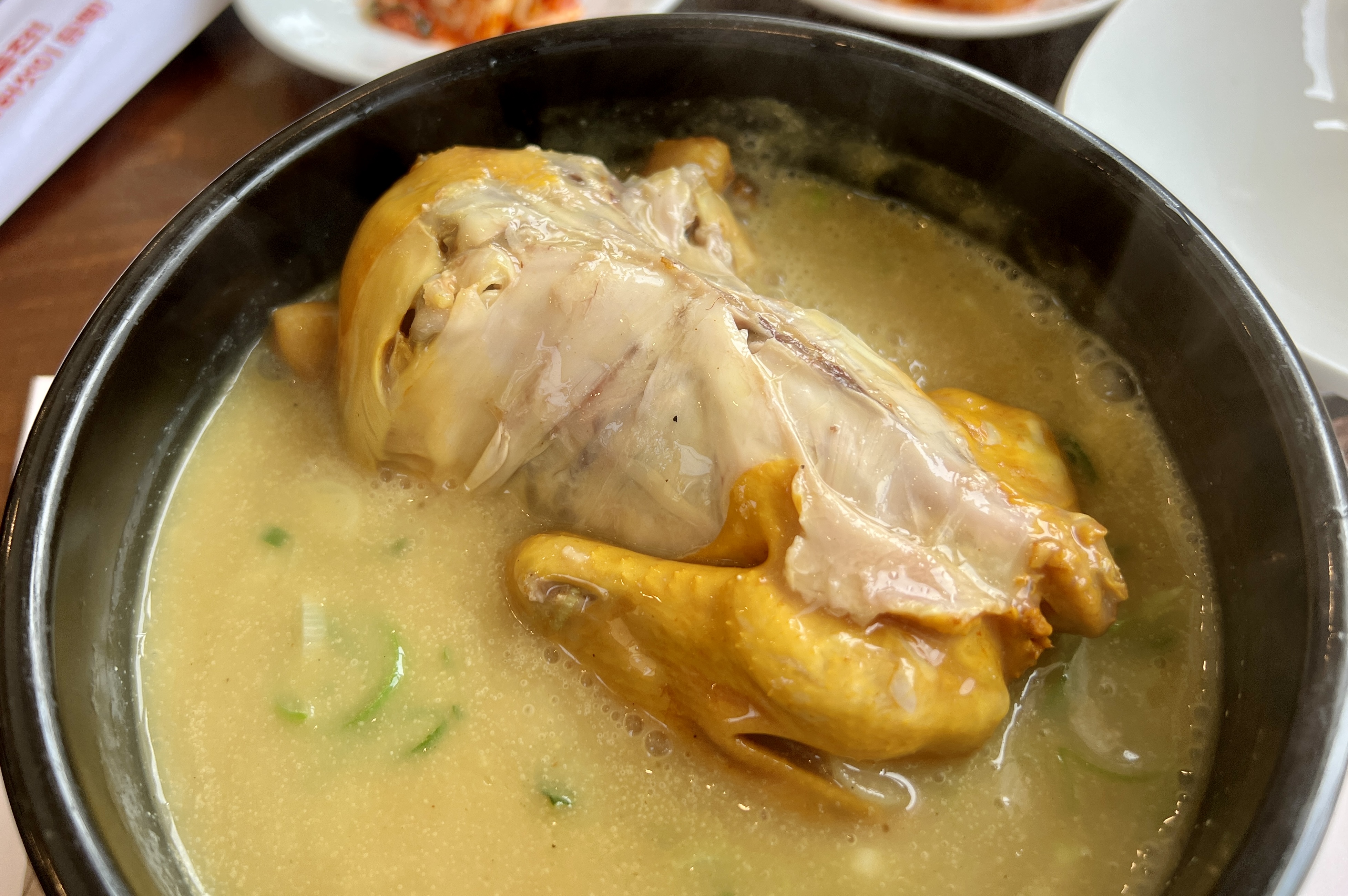 면역력이 강화되며 원기가 충전될 것처럼 보이는 비쥬얼의 백세삼계탕의 시그니처 메뉴 상황삼계탕입니다.