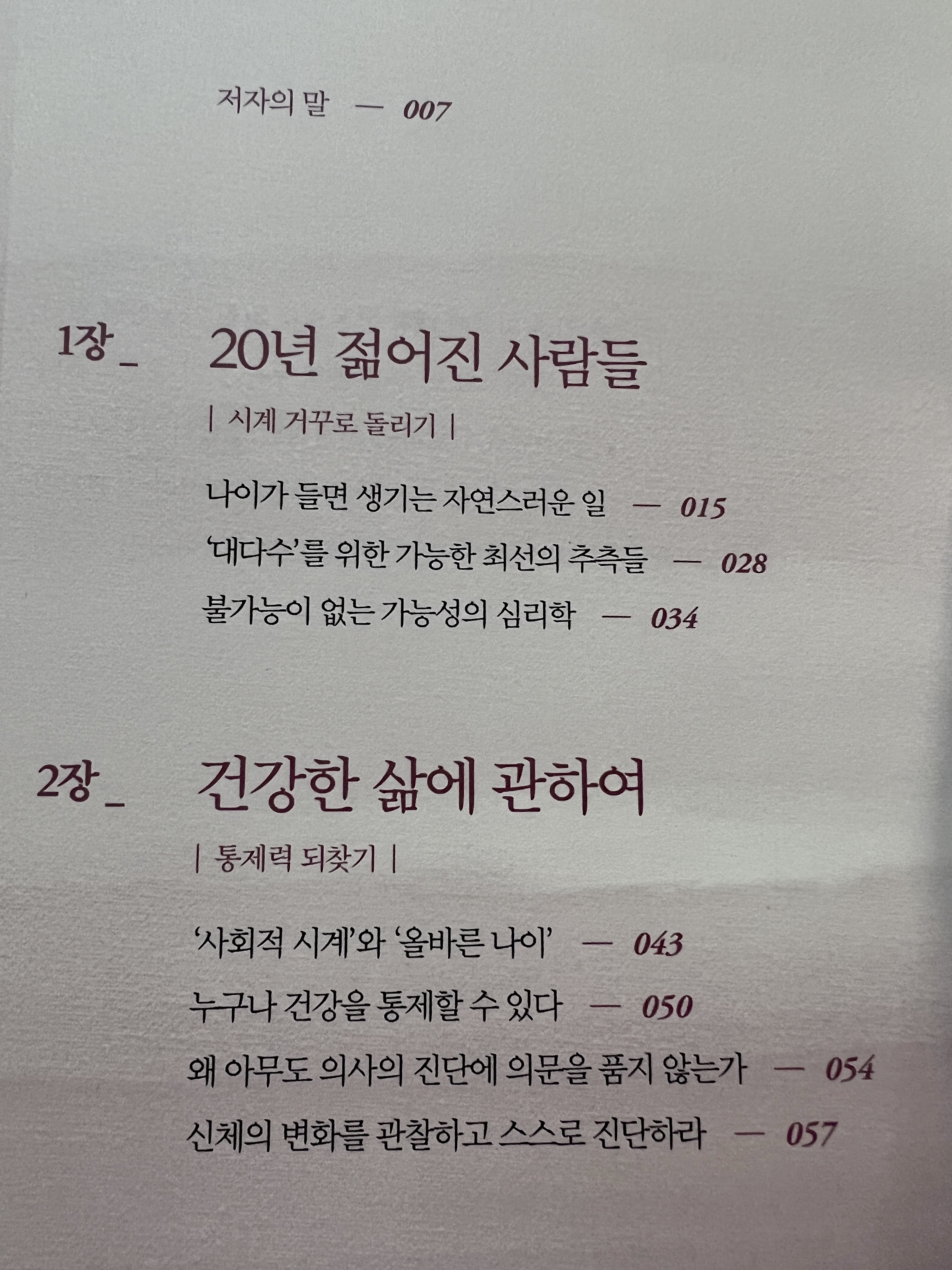 이렇게 실험으로 시작한 이 '늙는다는 착각' 은 책 전반에 걸쳐 우리가 기존에 알고 있던 내용에