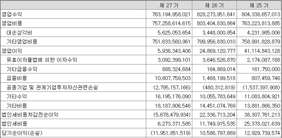 1. 코로나 이전인 2017부터 2019까지 코로나 전부터 이미 하락세였던 실적 추이