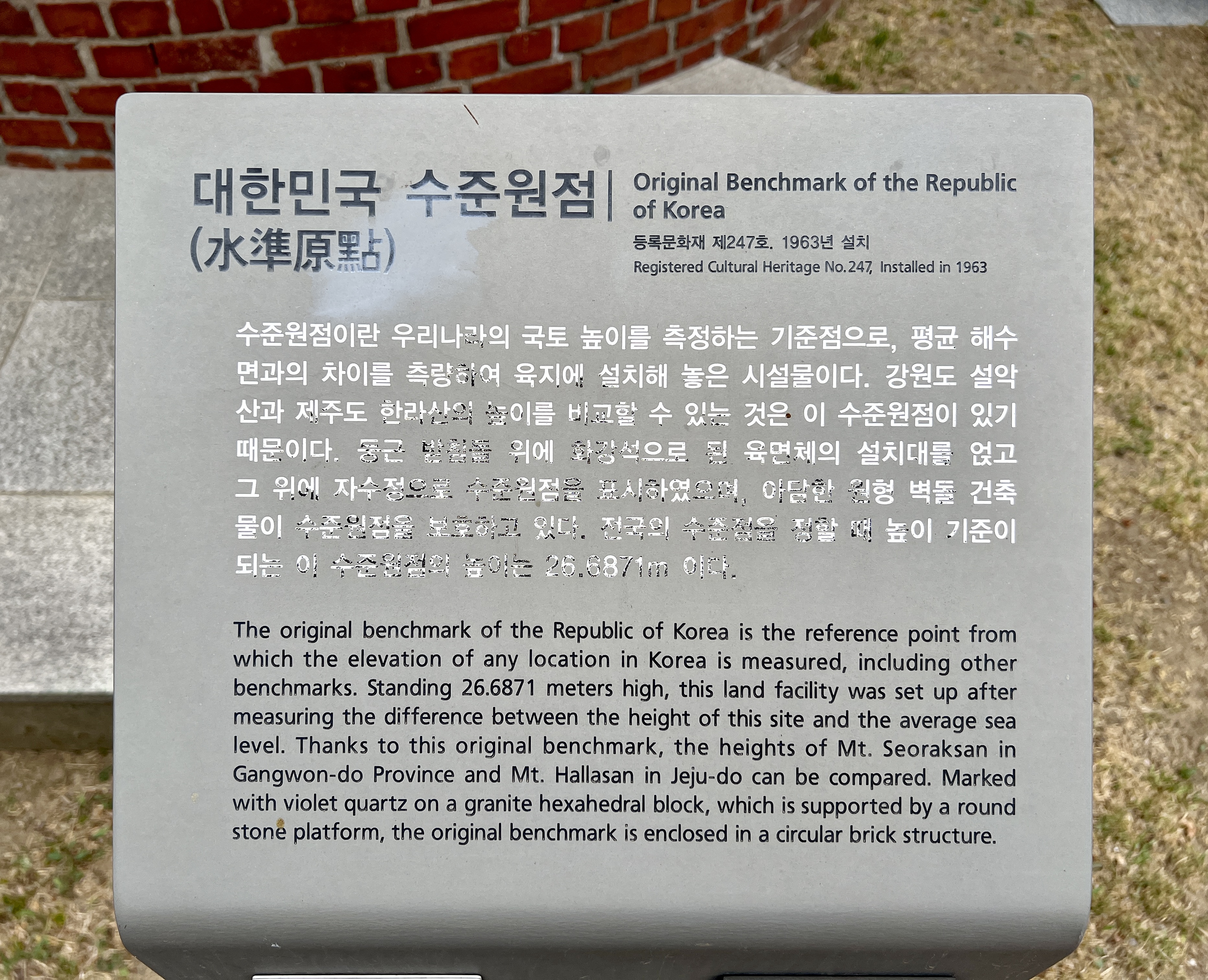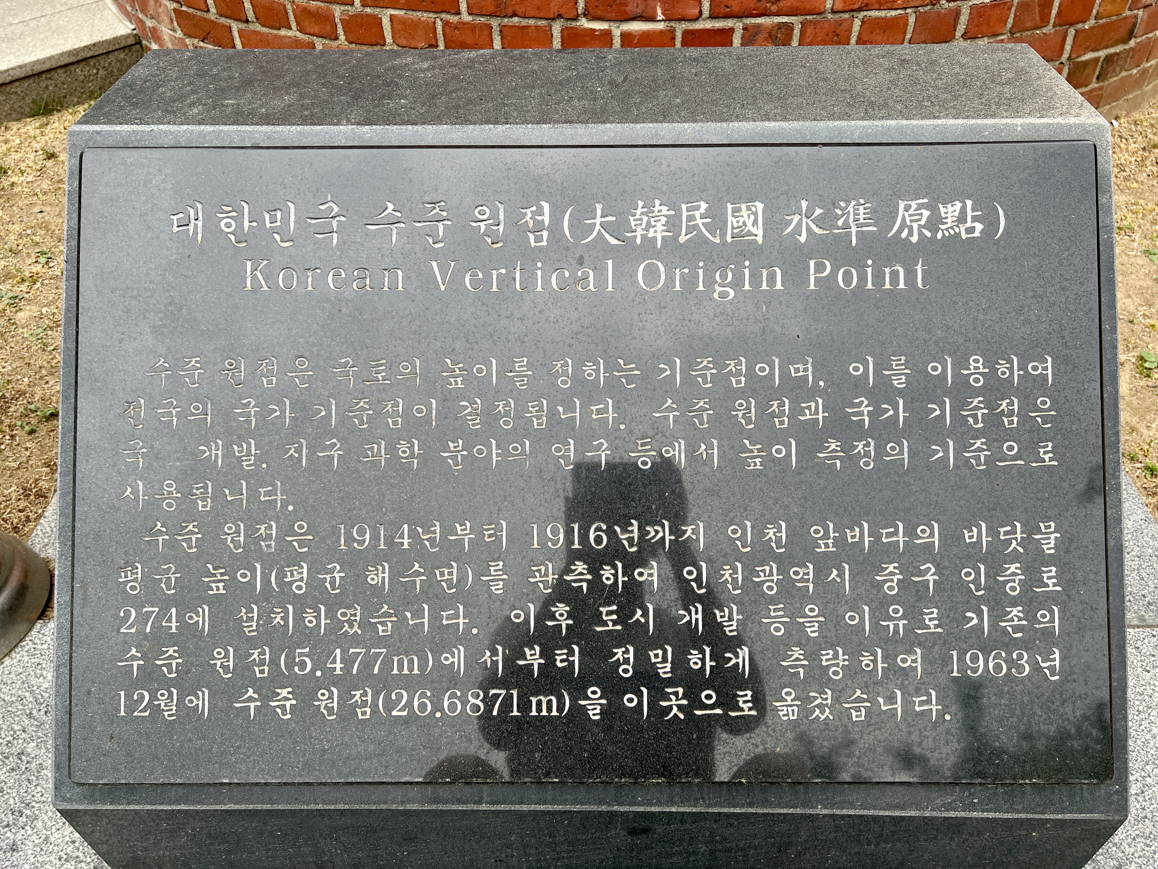 현재의 수준원점 26.6871m 을 이곳으로 옮겼다고 합니다.