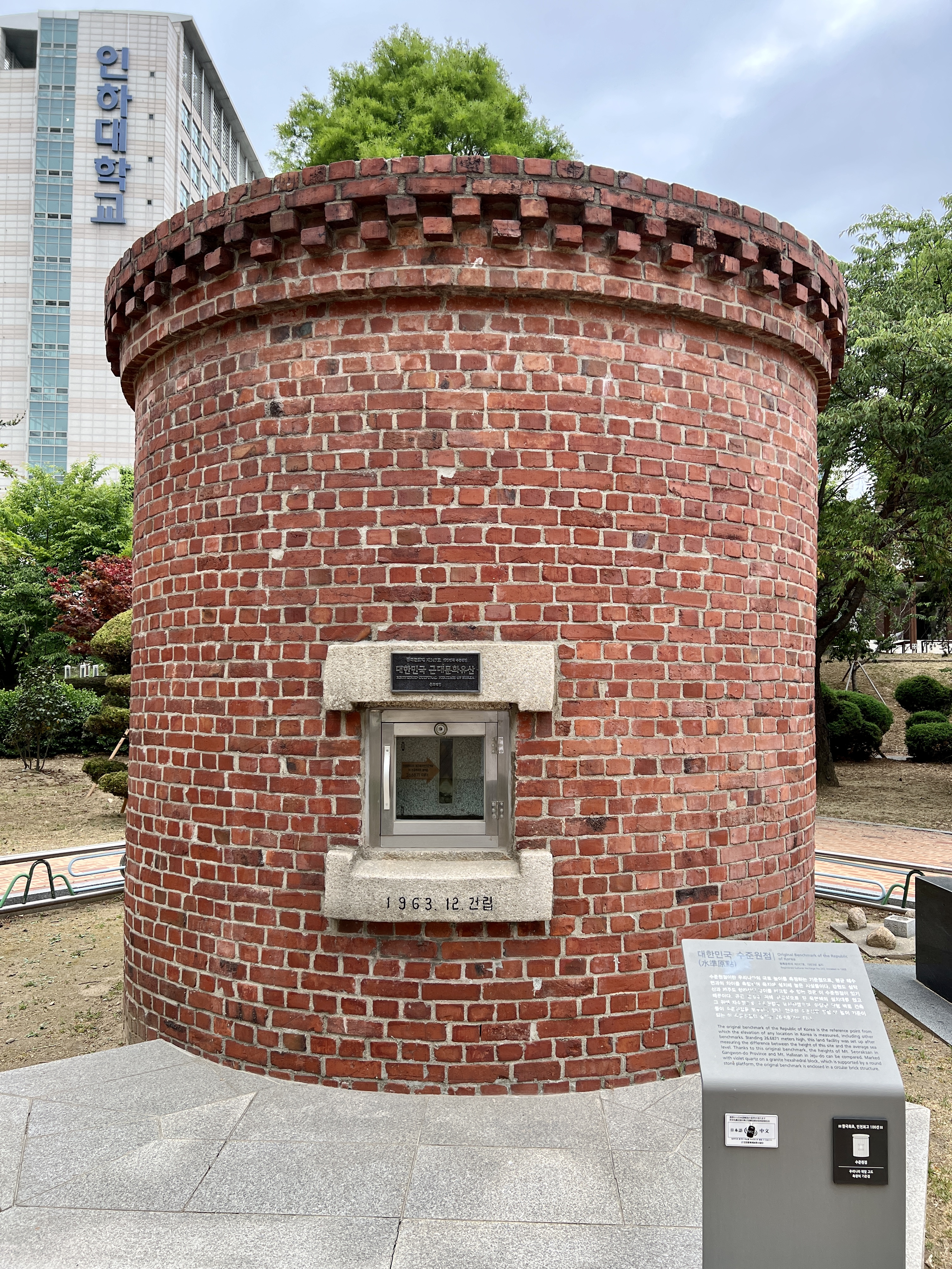 바로 그 기준 0m 가 되는 대한민국 수준원점이 인천의 인하공전 캠퍼스 안에 있어서 오랜만에 가보았습니다.