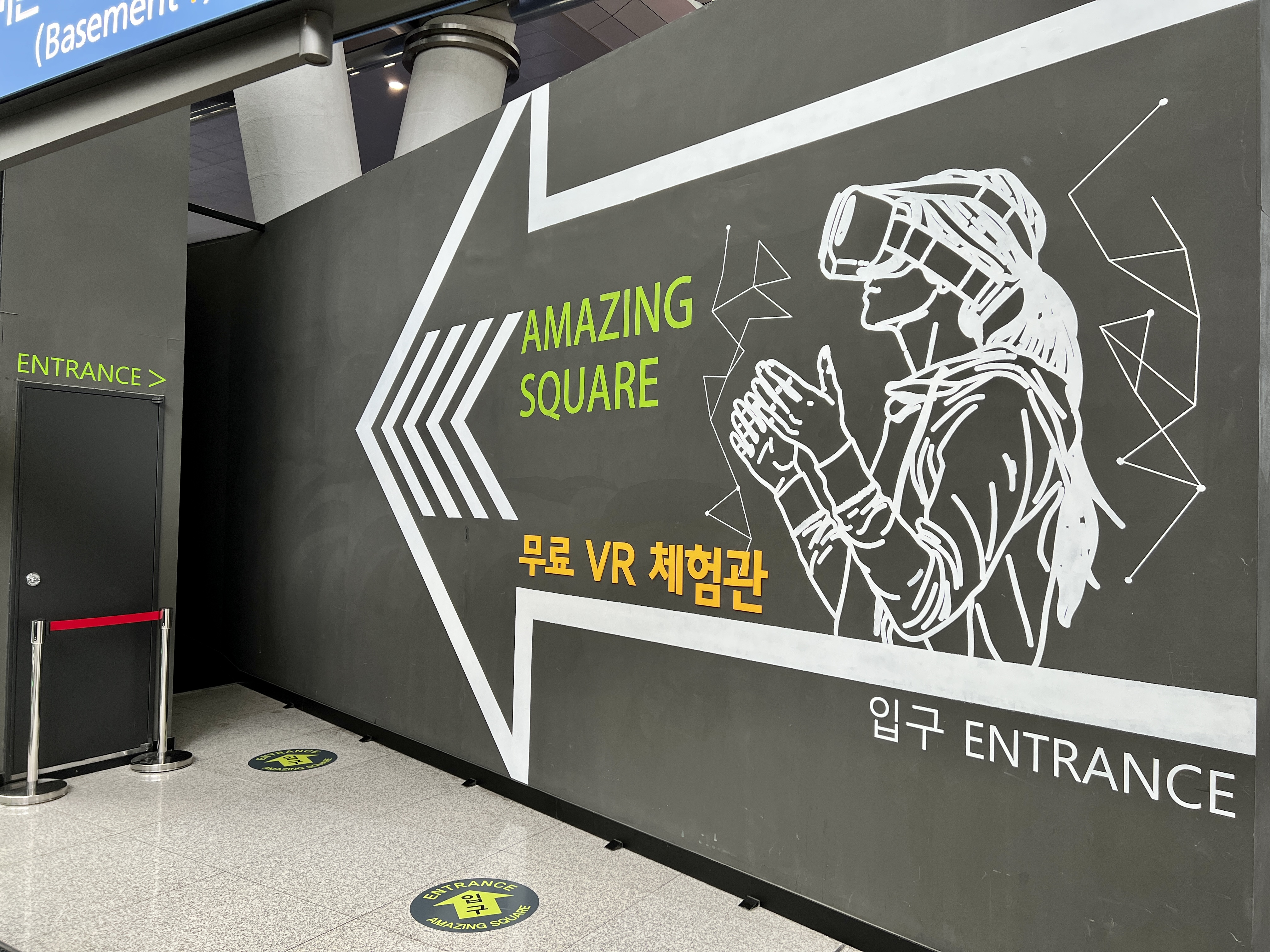 인천공항 VR 체험관 어메이징 스퀘어 Amazing Square는 인천공항 터미널 1 공항철도 개찰구 앞에 있습니다.