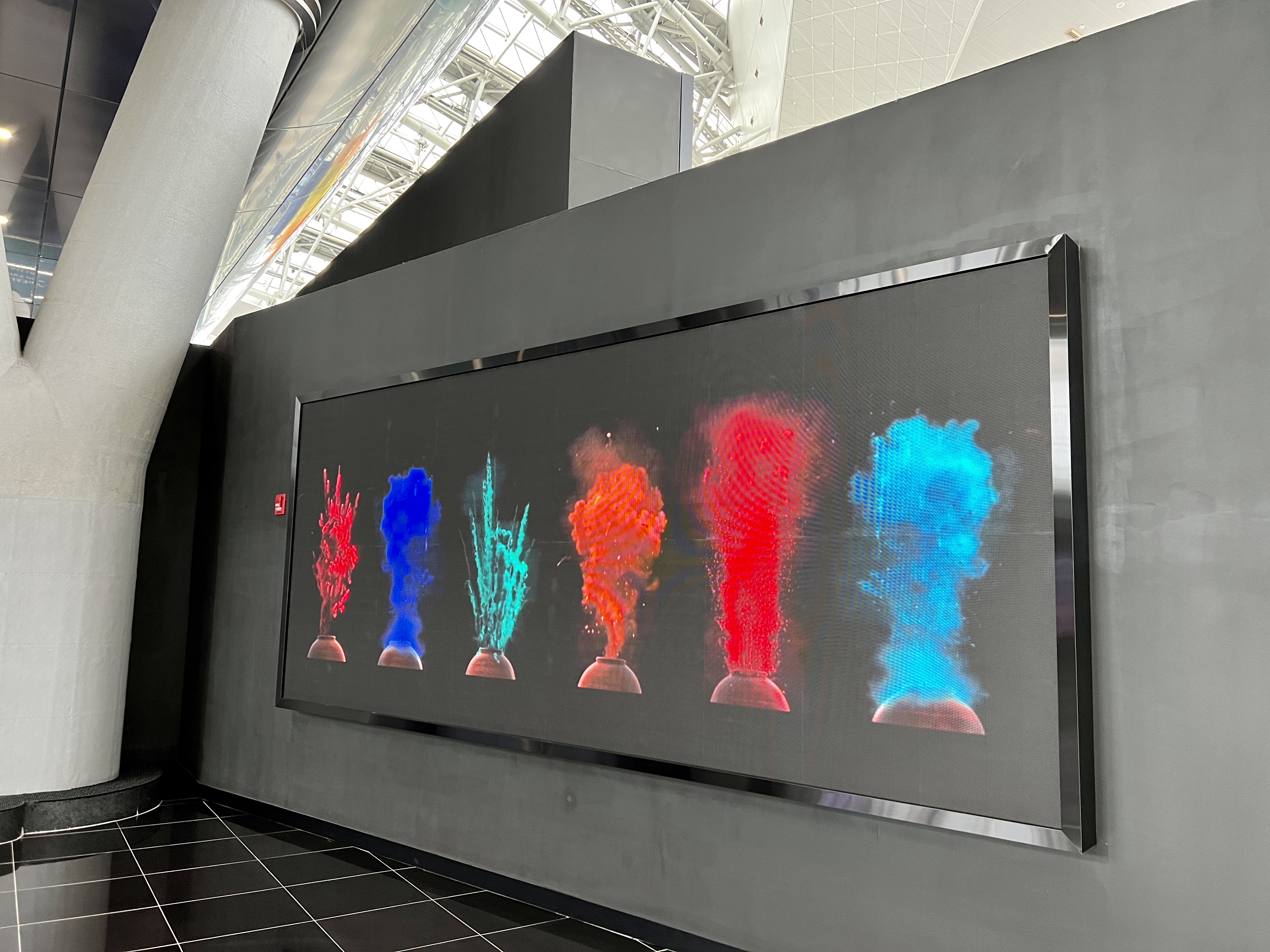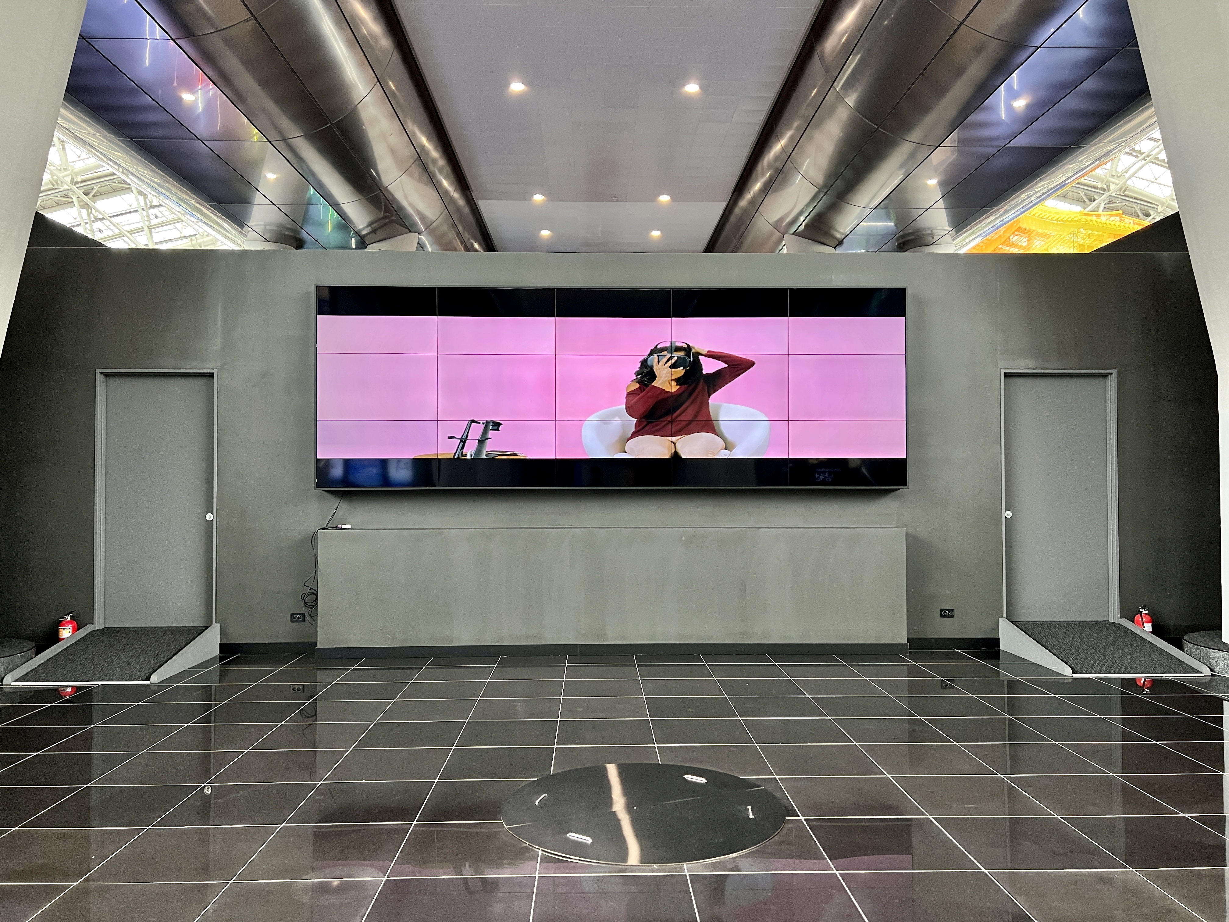 전면에서 보면 정면화면과 양쪽의 Video 가 세련된 VR 체험관의 분위기를 자아내고 있습니다.
