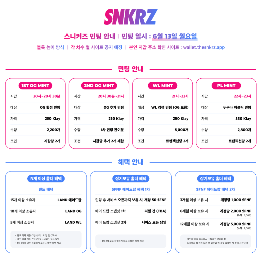 SNKRZ 스니커즈 민팅 일자