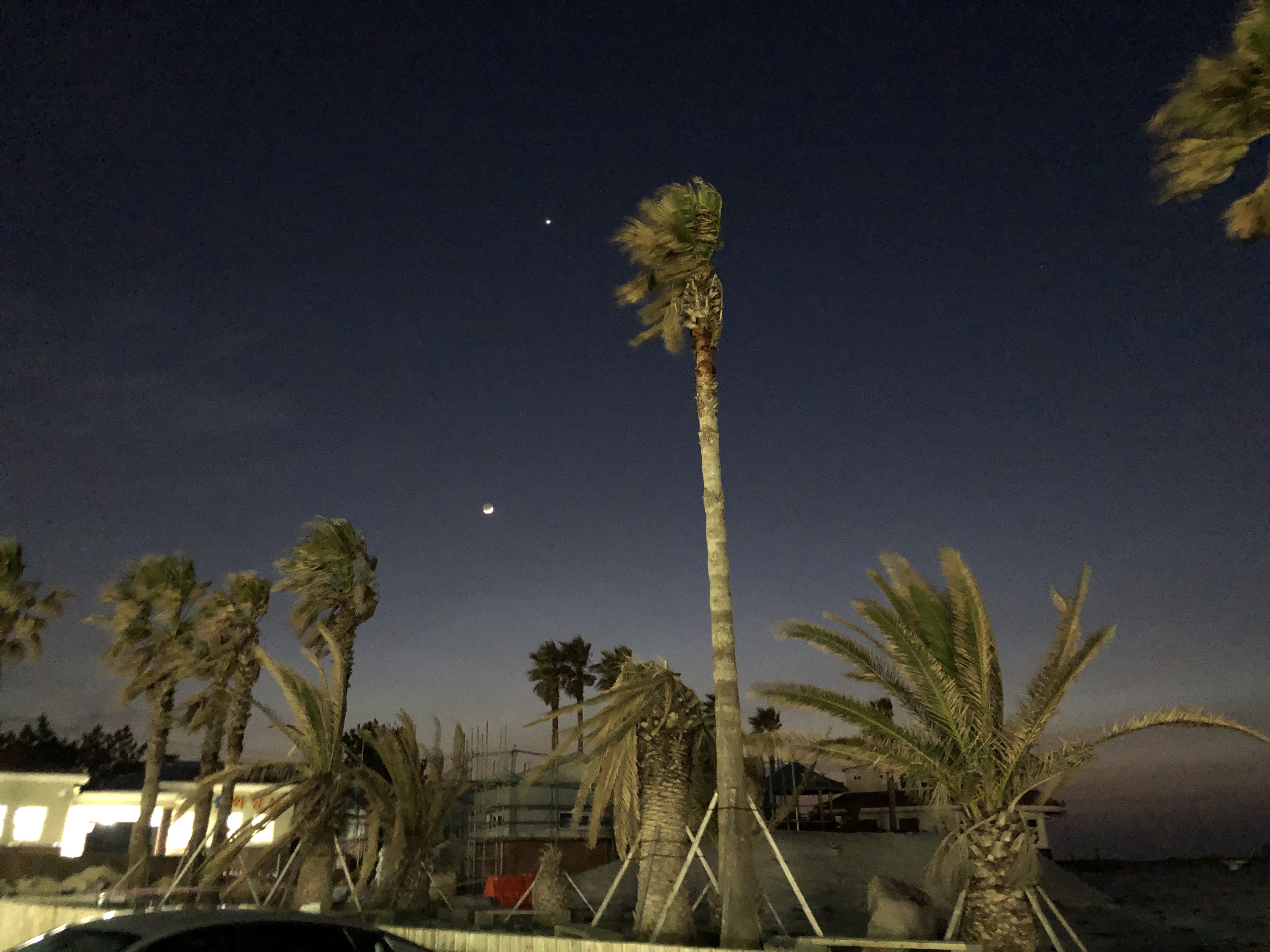 매우 얇은 초승달이 떴는데 폰카로는 어두운 부분까지 찍혀서 둥그런 달이 나온다.