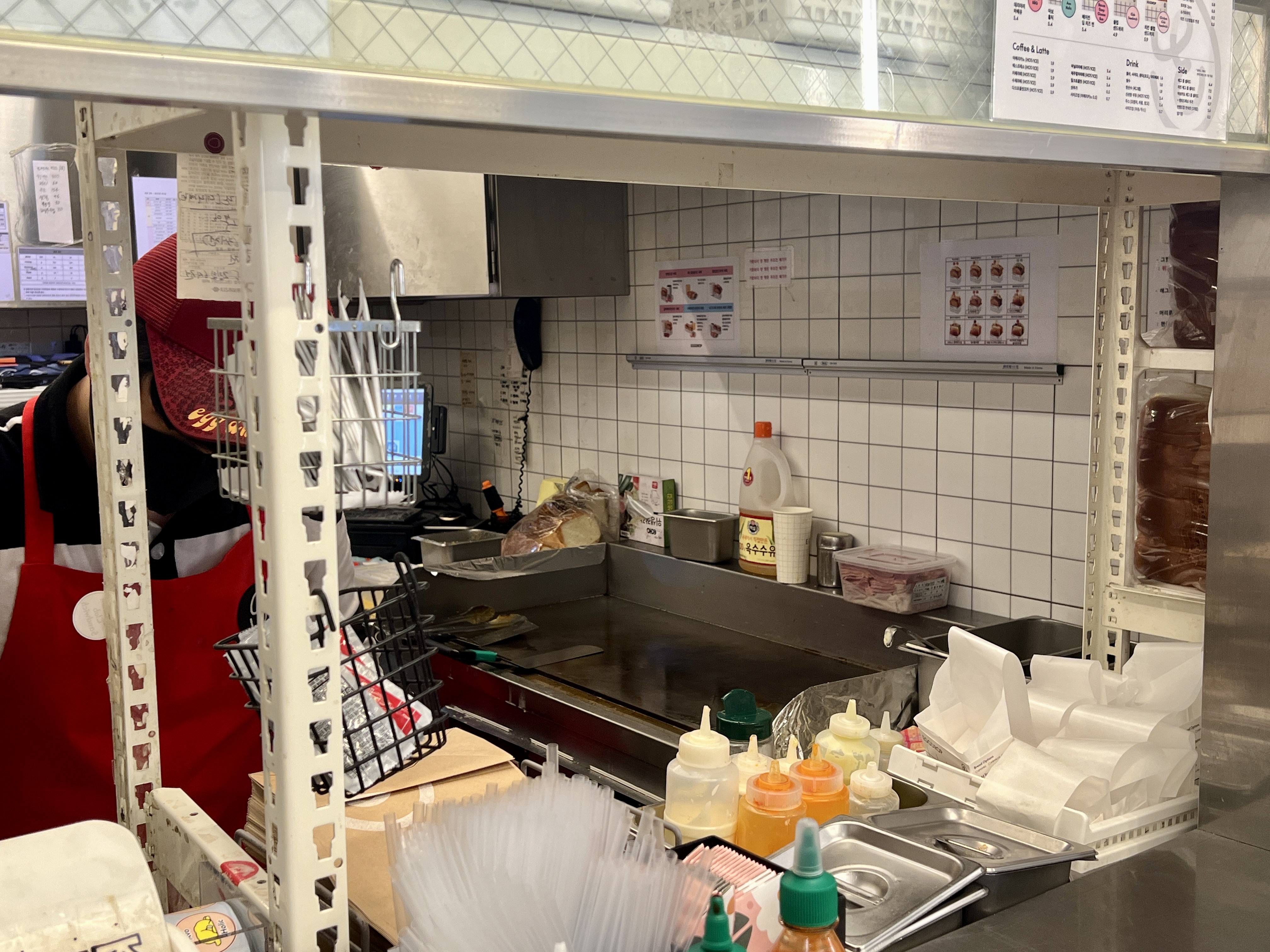 매장에서 키오스크로 주문을 하고 기다리고 있으면 뚫린 부분을 통해 요리하는것을 직접 볼 수 있습니다.