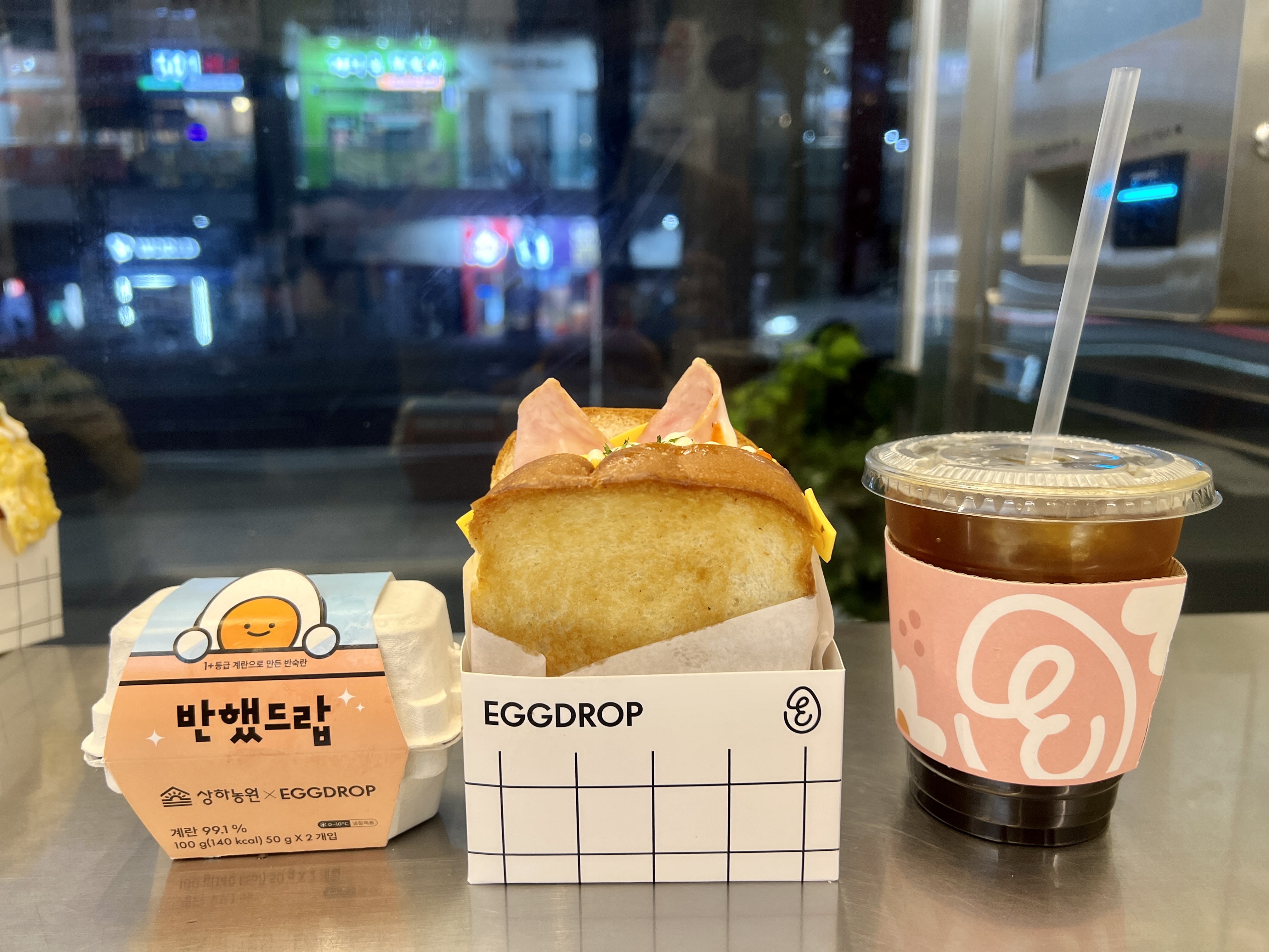 반숙란은 퍽퍽하지 않아서 샌드위치와 함께 먹기 좋았고, 커피까지 있어서 조합이 더 좋았습니다.