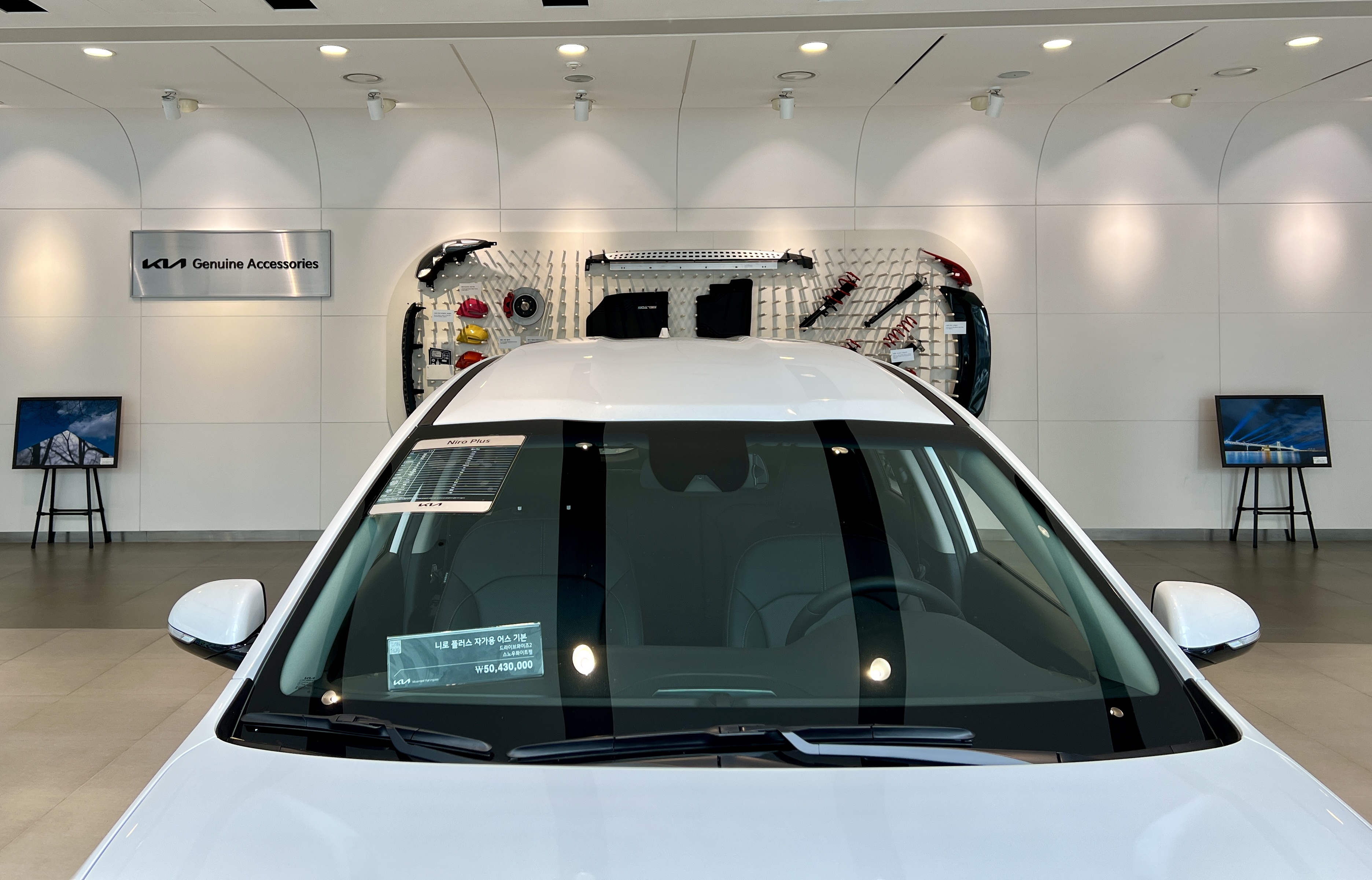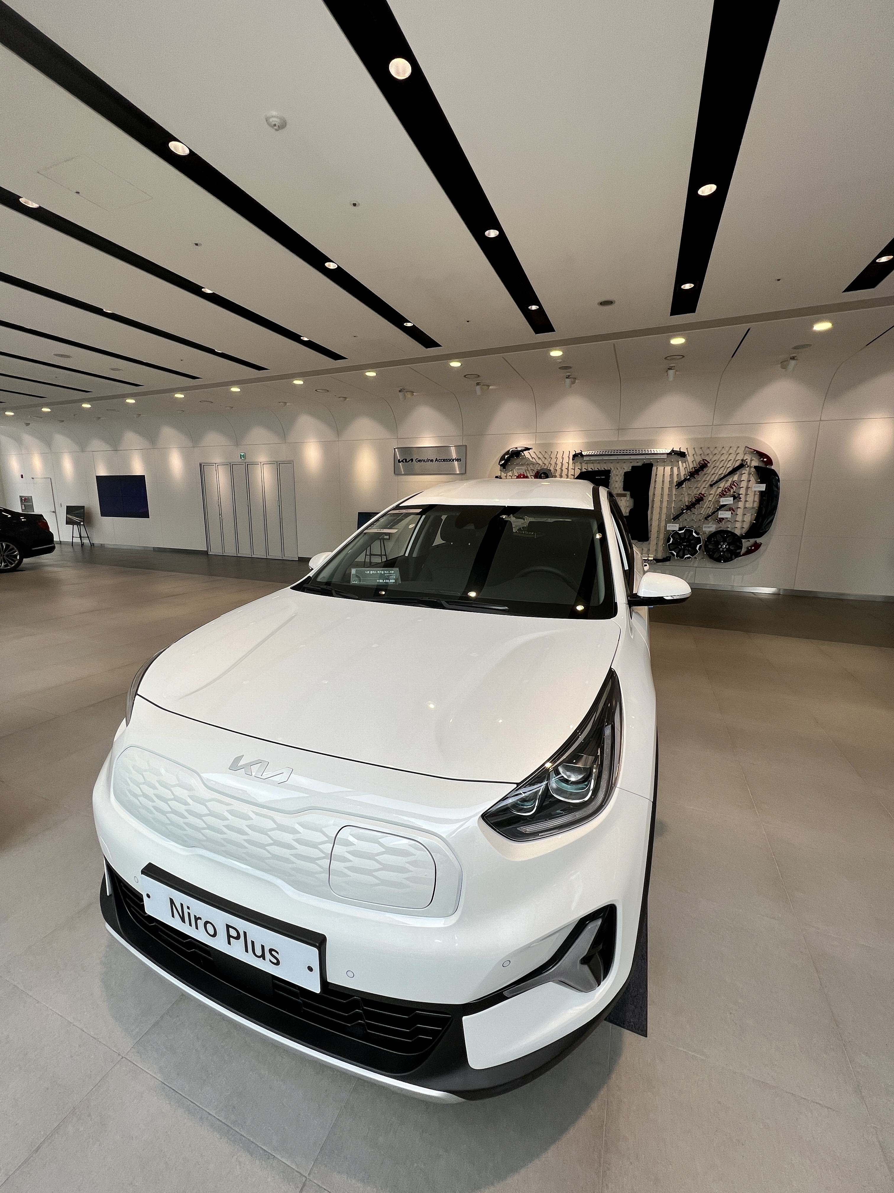 니로 하이브리드는 차량이 전시되어 있지 않아, 모양은 조금 다르지만 크기가 거의 비슷한