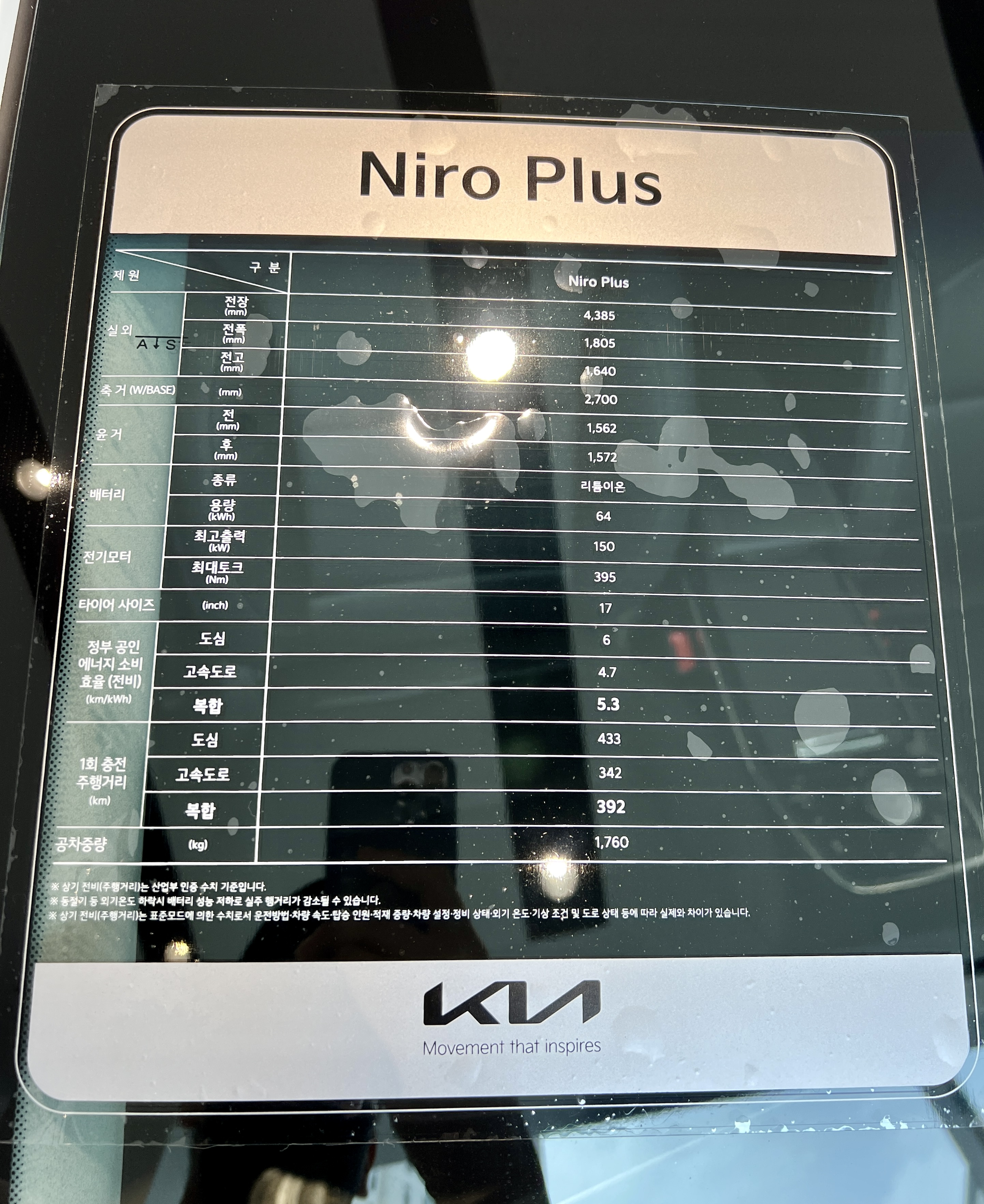 니로 하이브리드는 차량이 전시되어 있지 않아, 모양은 조금 다르지만 크기가 거의 비슷한