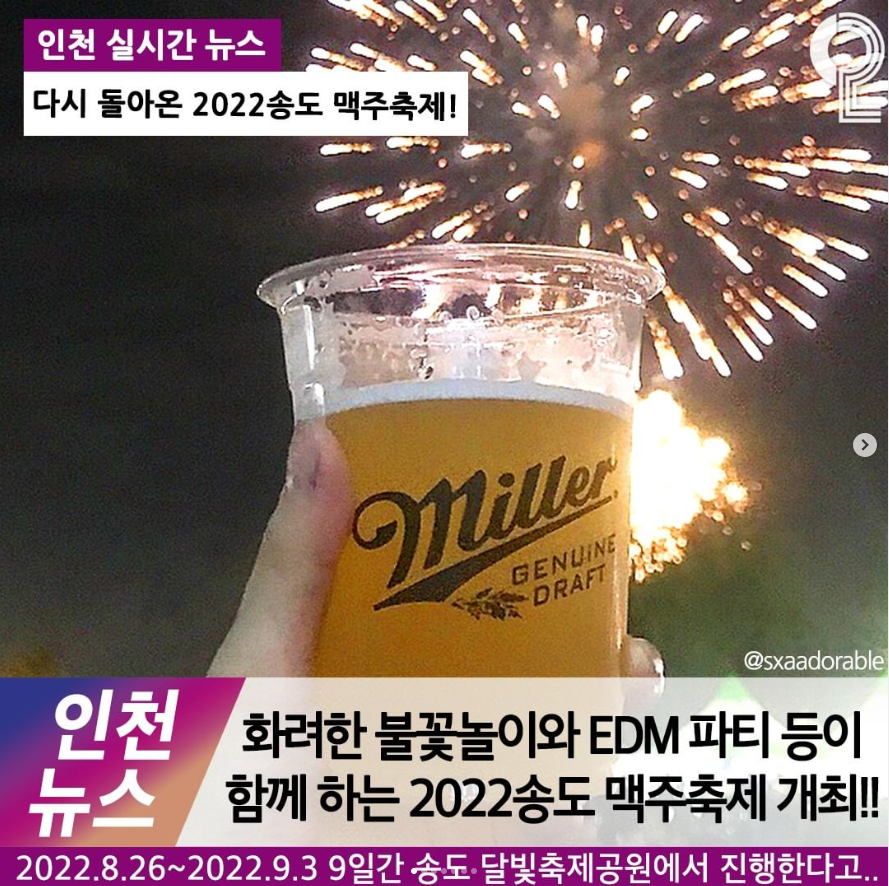 - 2022 인천 송도 맥주축제 일정 : 2022년 8월 26일 ~ 9월 3일 (9일간 진행)