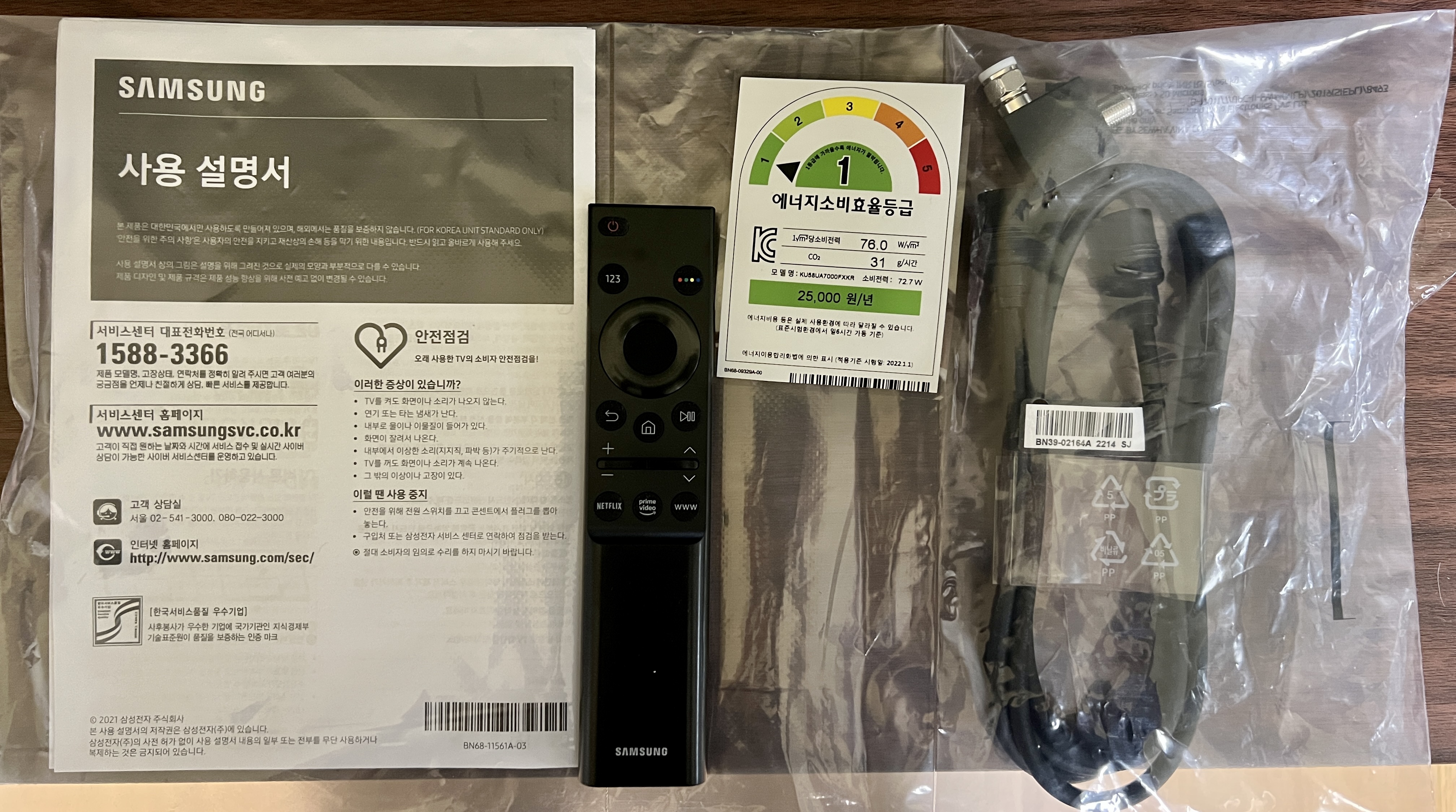 아래는 새로온 특가로 구매한 삼성 UHD tv 57인치 (146cm) 실물입니다.