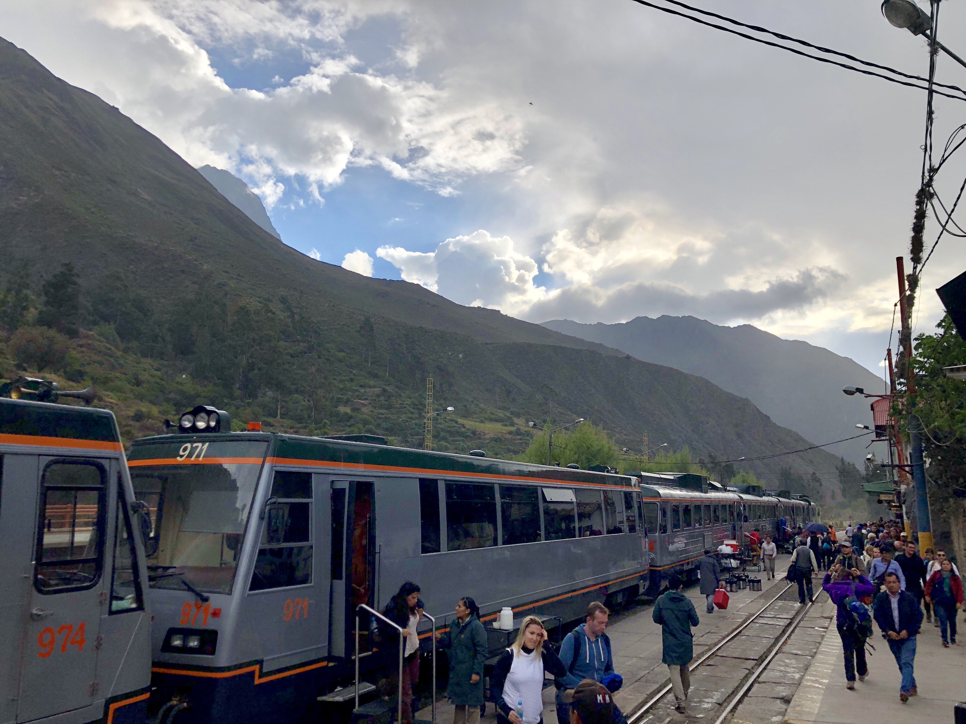 마추픽추에서 온 사람들이 내리고 다시 마추픽추로 향하는 사람들을 태우고 떠날 채비를 한다.