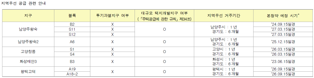 다만, 지역우선 공급 거주기간 요건의 경우 사전청약 입주자모집공고일 현재 우선공급 대상이 되는 지역에