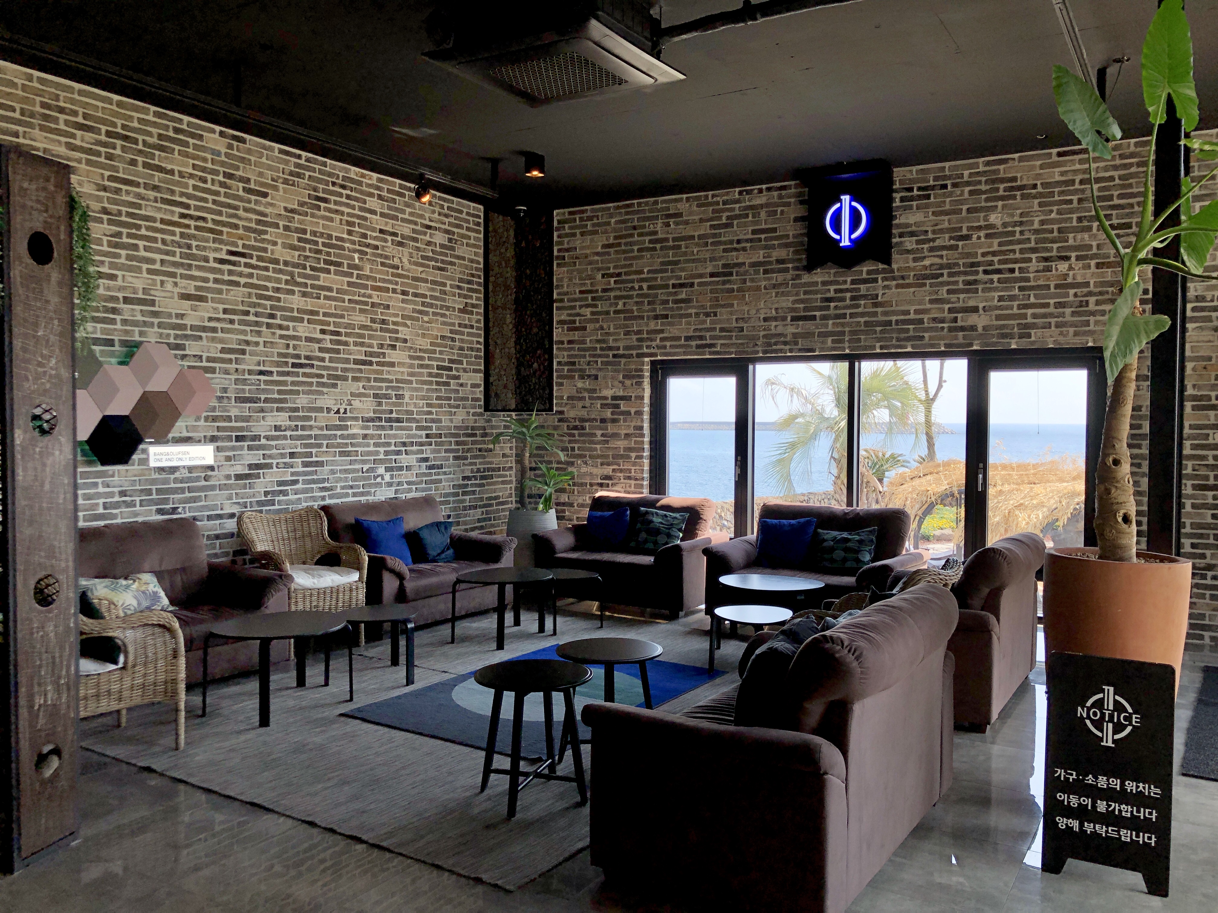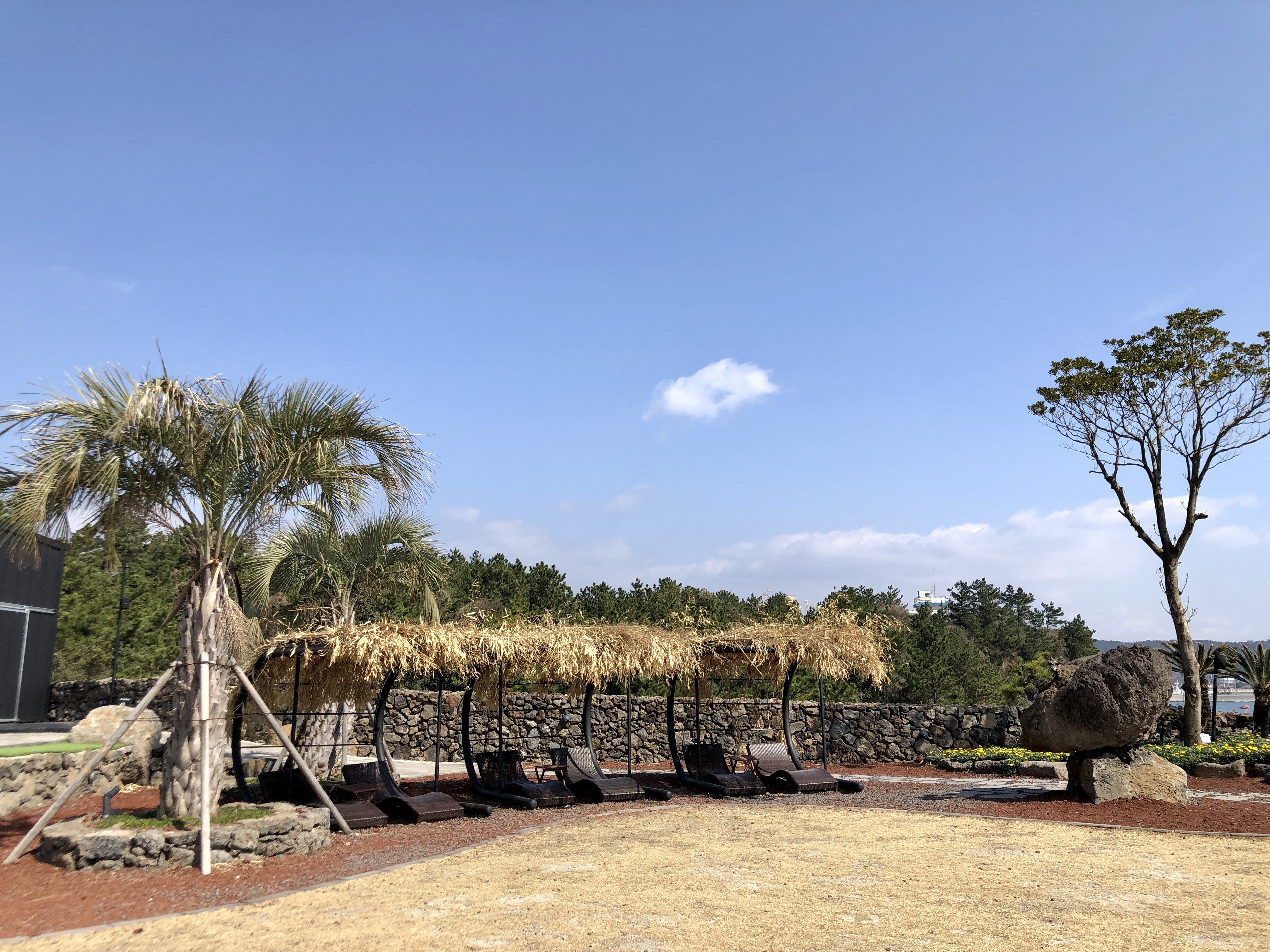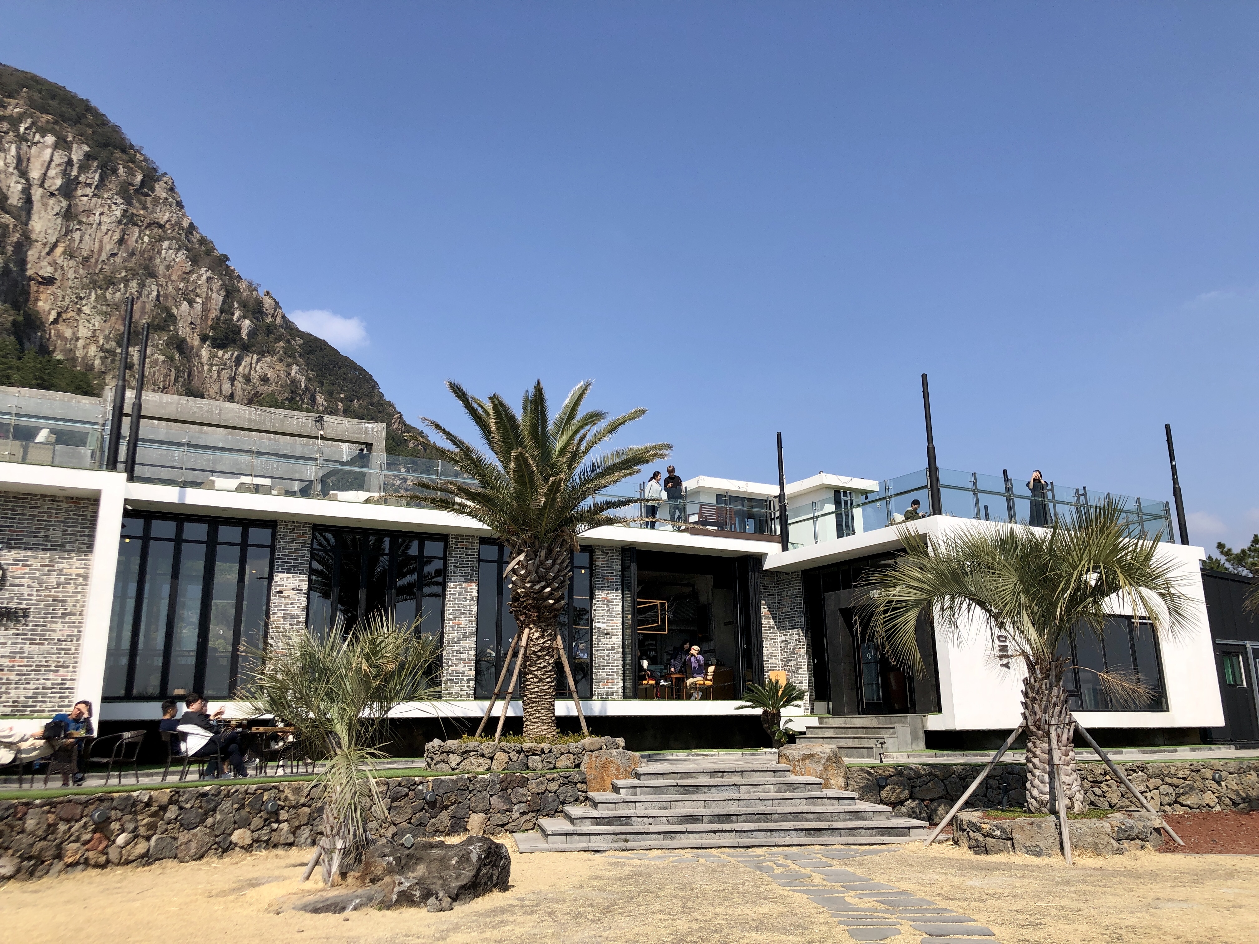 제주도 산방산 카페 원앤온리 One and Only 는 바다 바로 앞에 있어 바닷가를 바라보며 차를 마실 수 있다