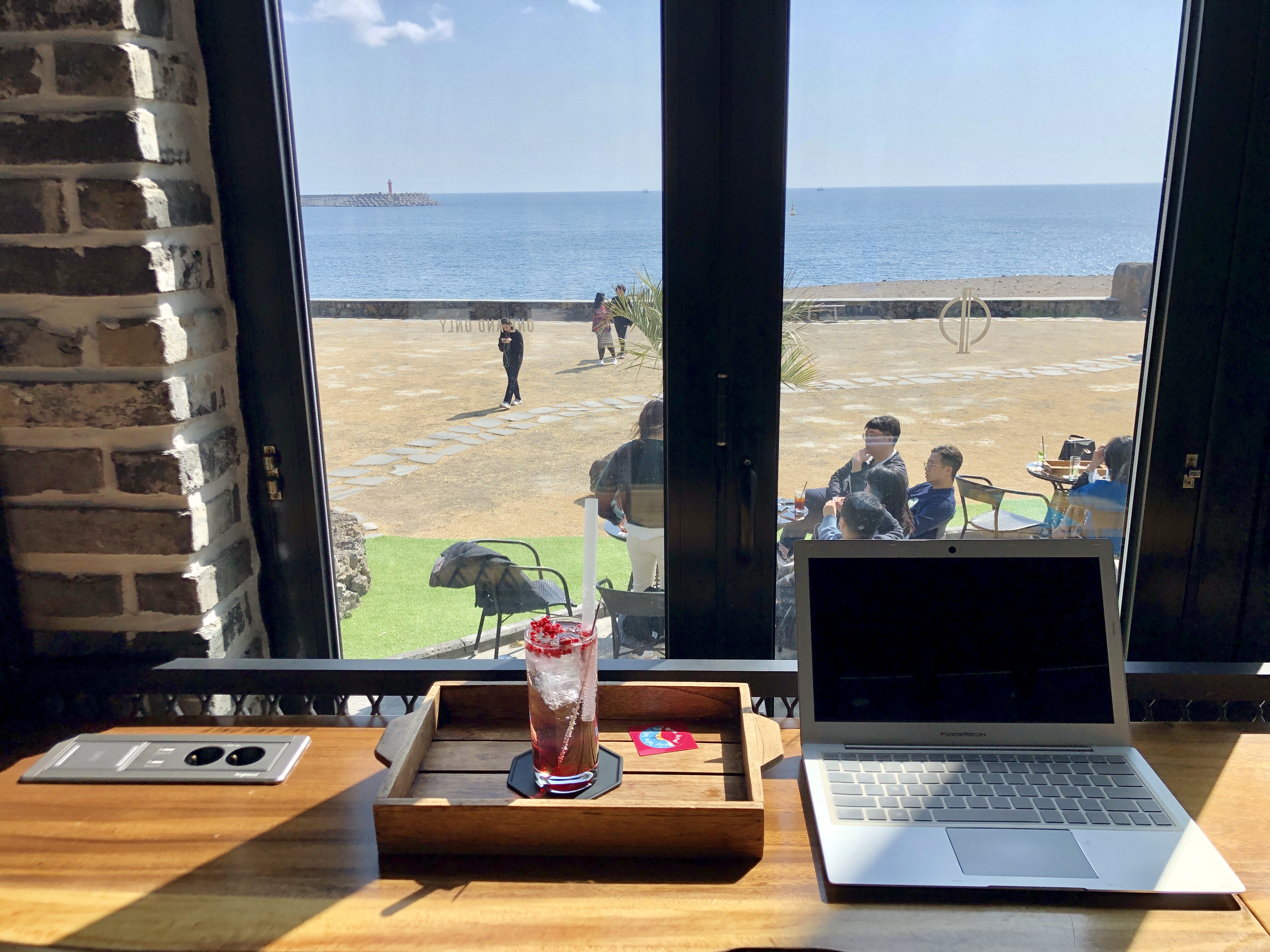 이 테이블에 앉아서 앞선 포스팅 '급 떠나는 제주도 여행 2편' 을 썼다.