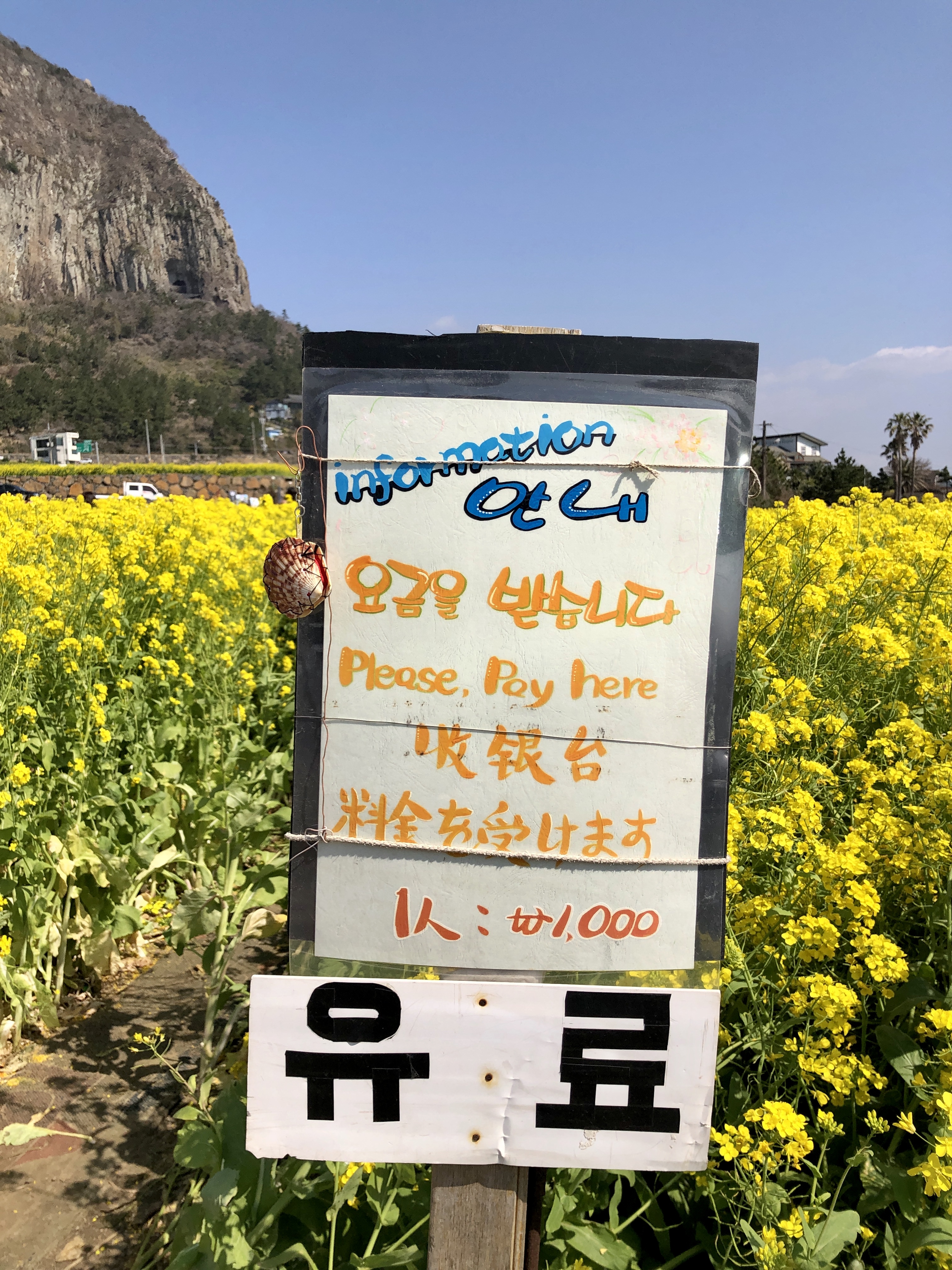 이 유채꽃밭은 1인당 1,000원 유료이며, 도착하면 관리하는 아저씨가 와서 돈을 징수한다.