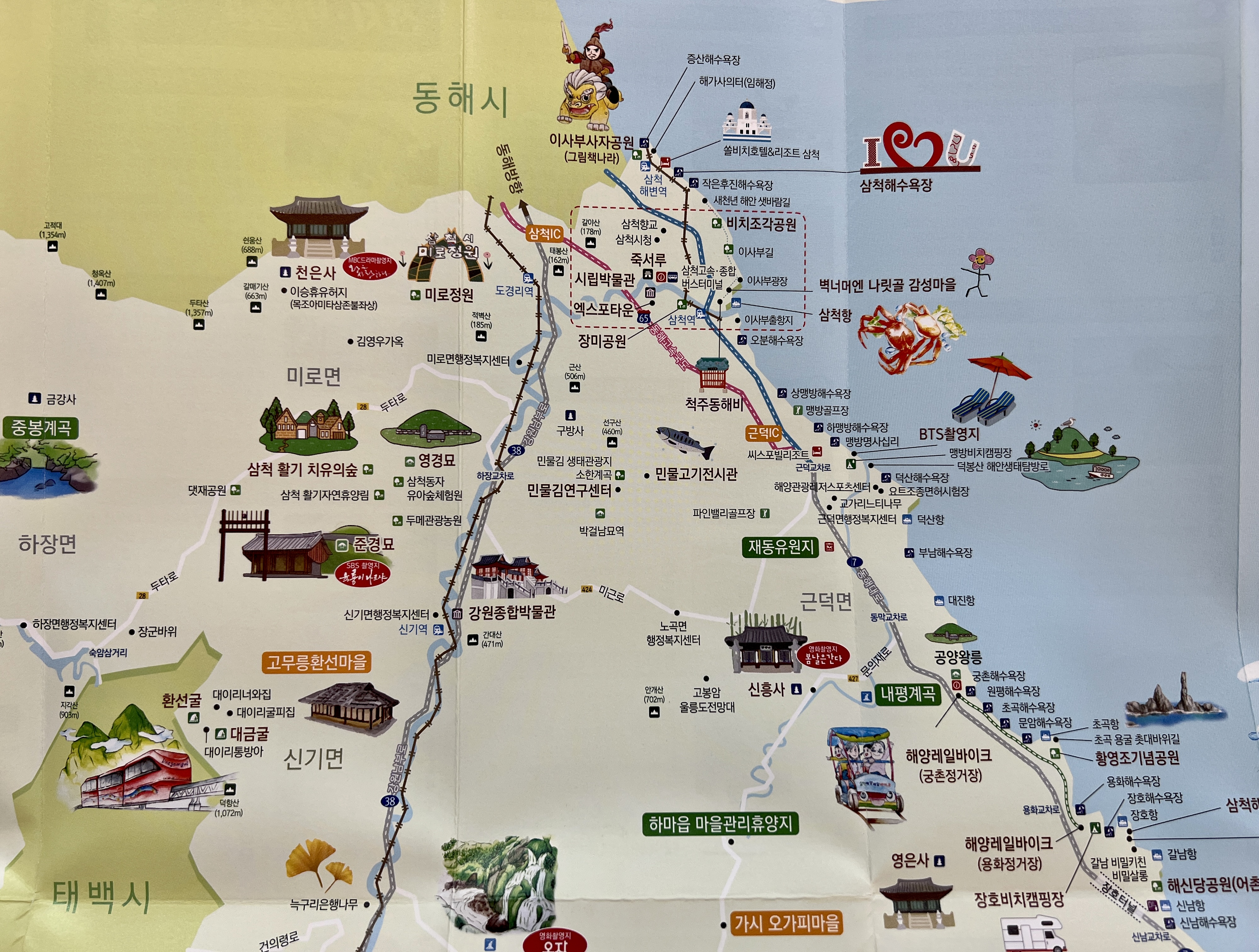체크인 시 삼척과 동해시 관광지 정보가 나와있는 지도를 얻을 수 있습니다.