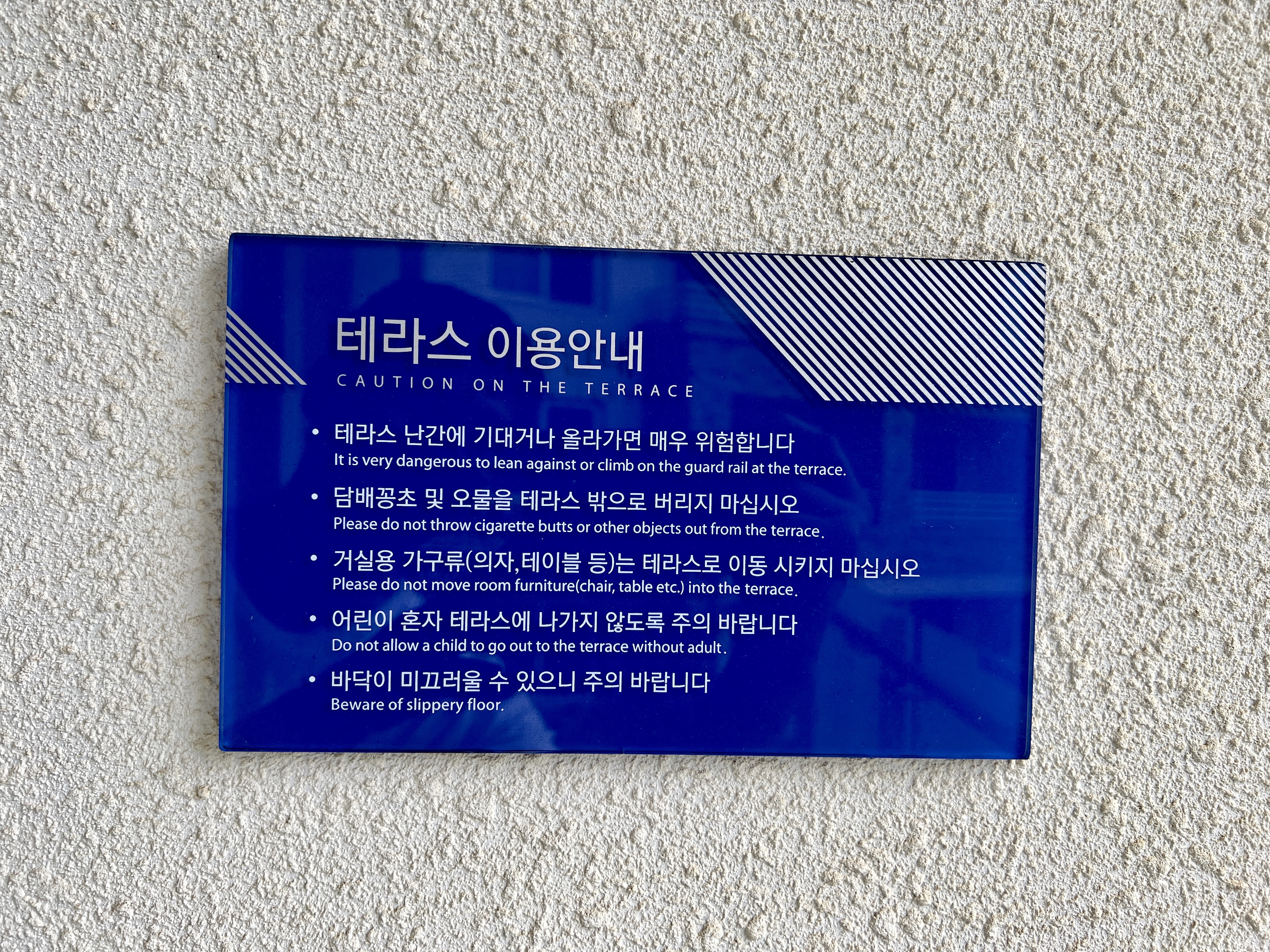 저희는 비교적 낮은 2층이라 높지 않았지만 그래도 테라스에서는 늘 주의해야한다고 합니다.