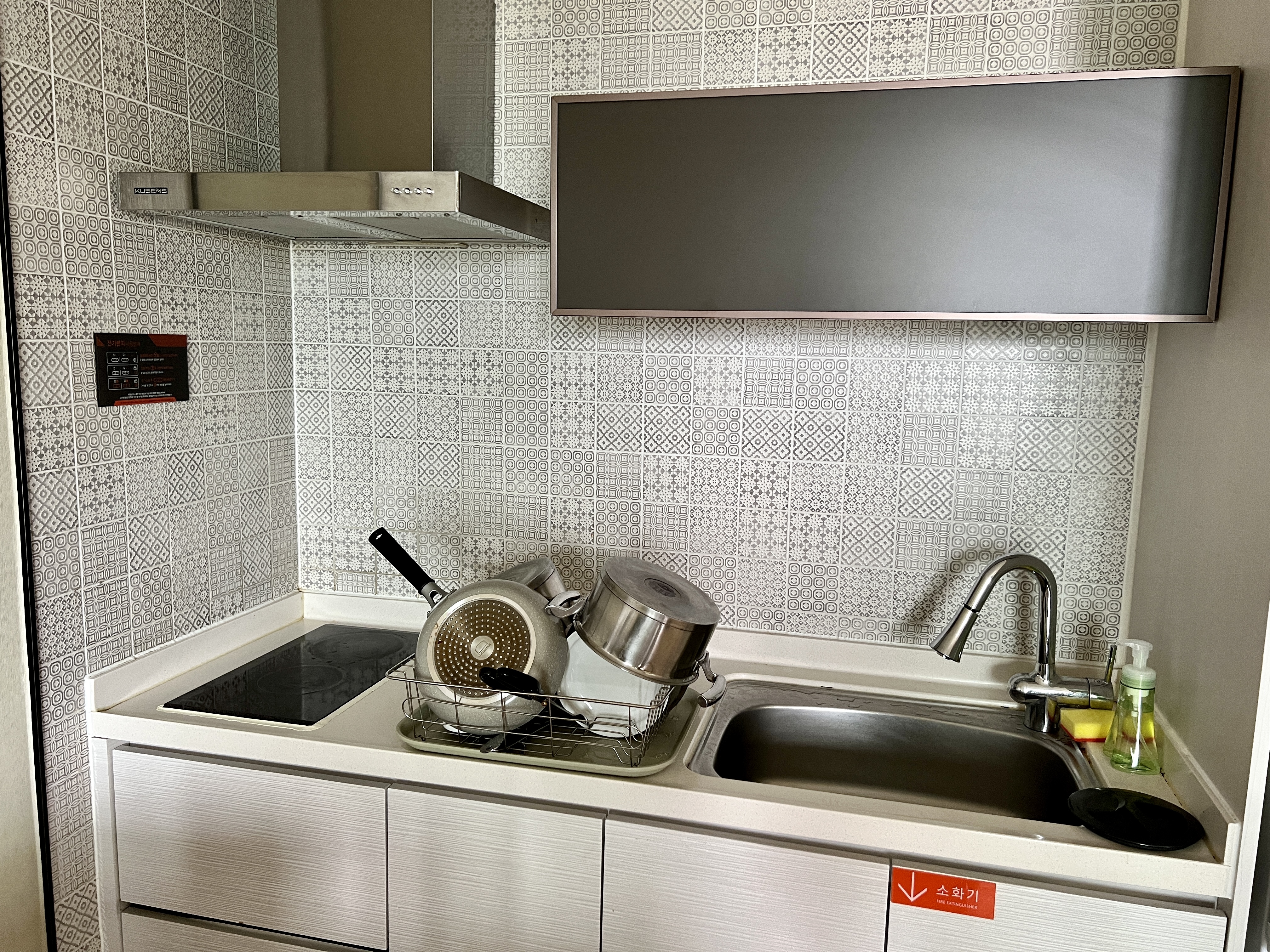 그리고 룸 이름처럼 취사가 가능한 객실이었는데, 취사도구와 수저도 구비되어 있습니다.