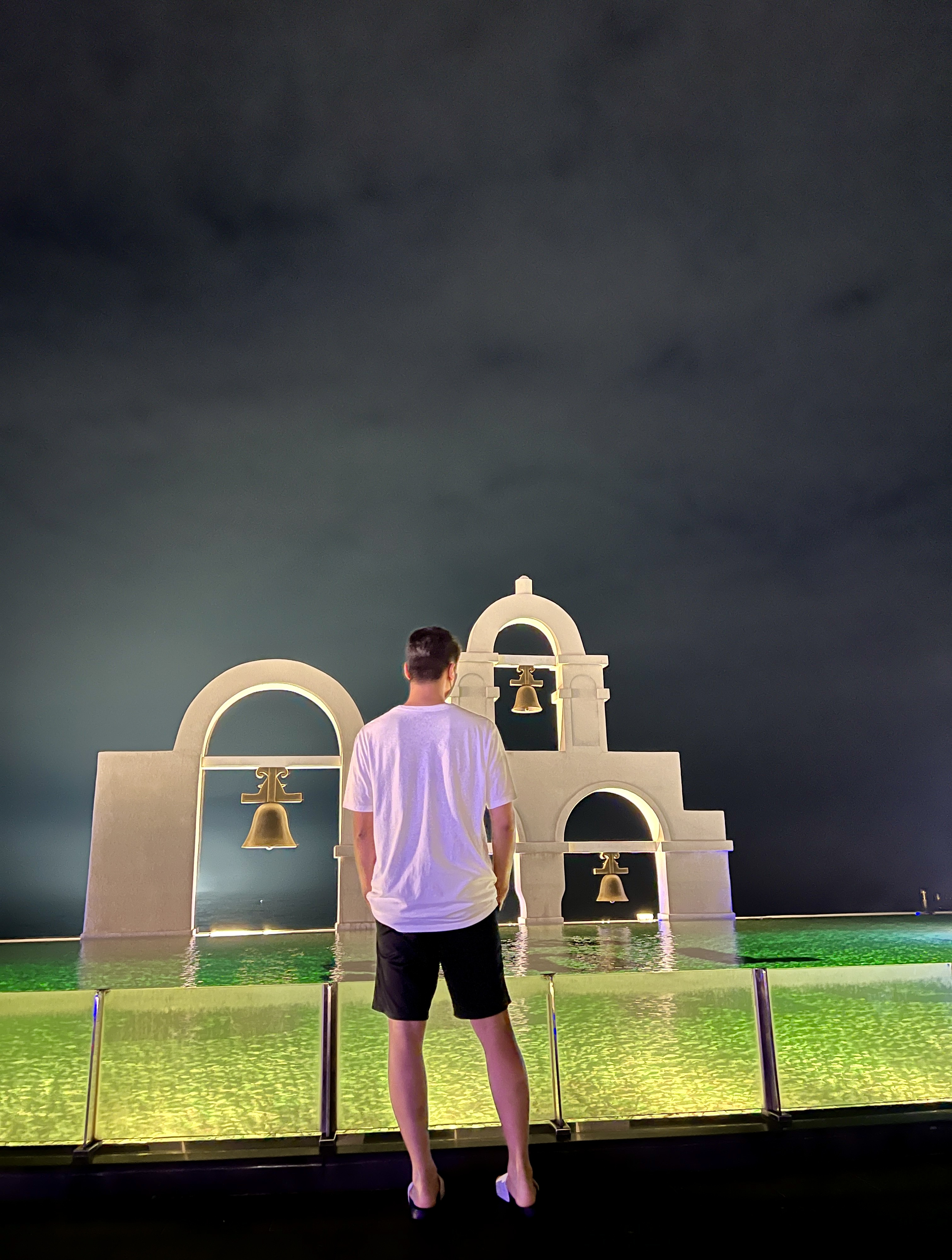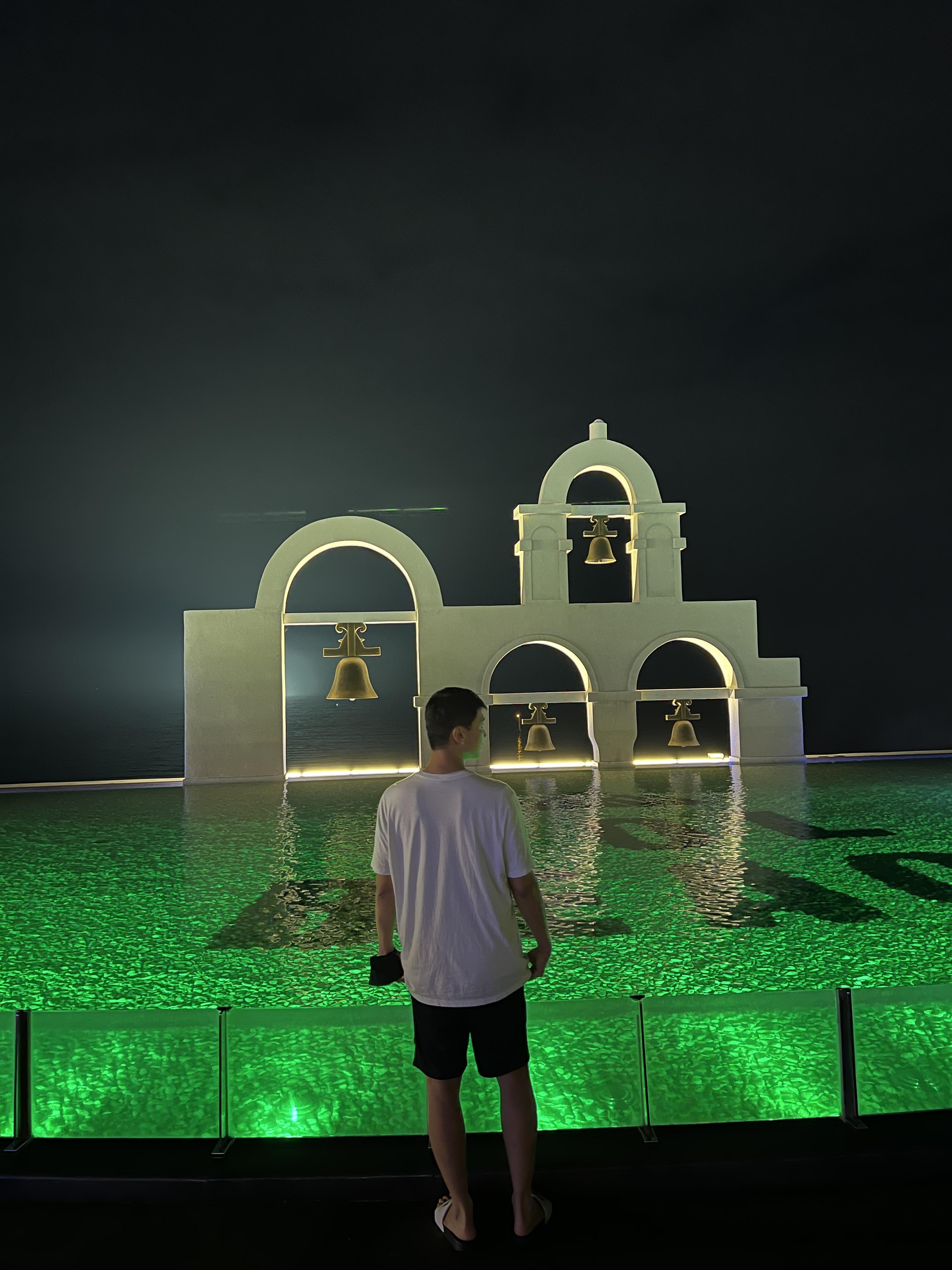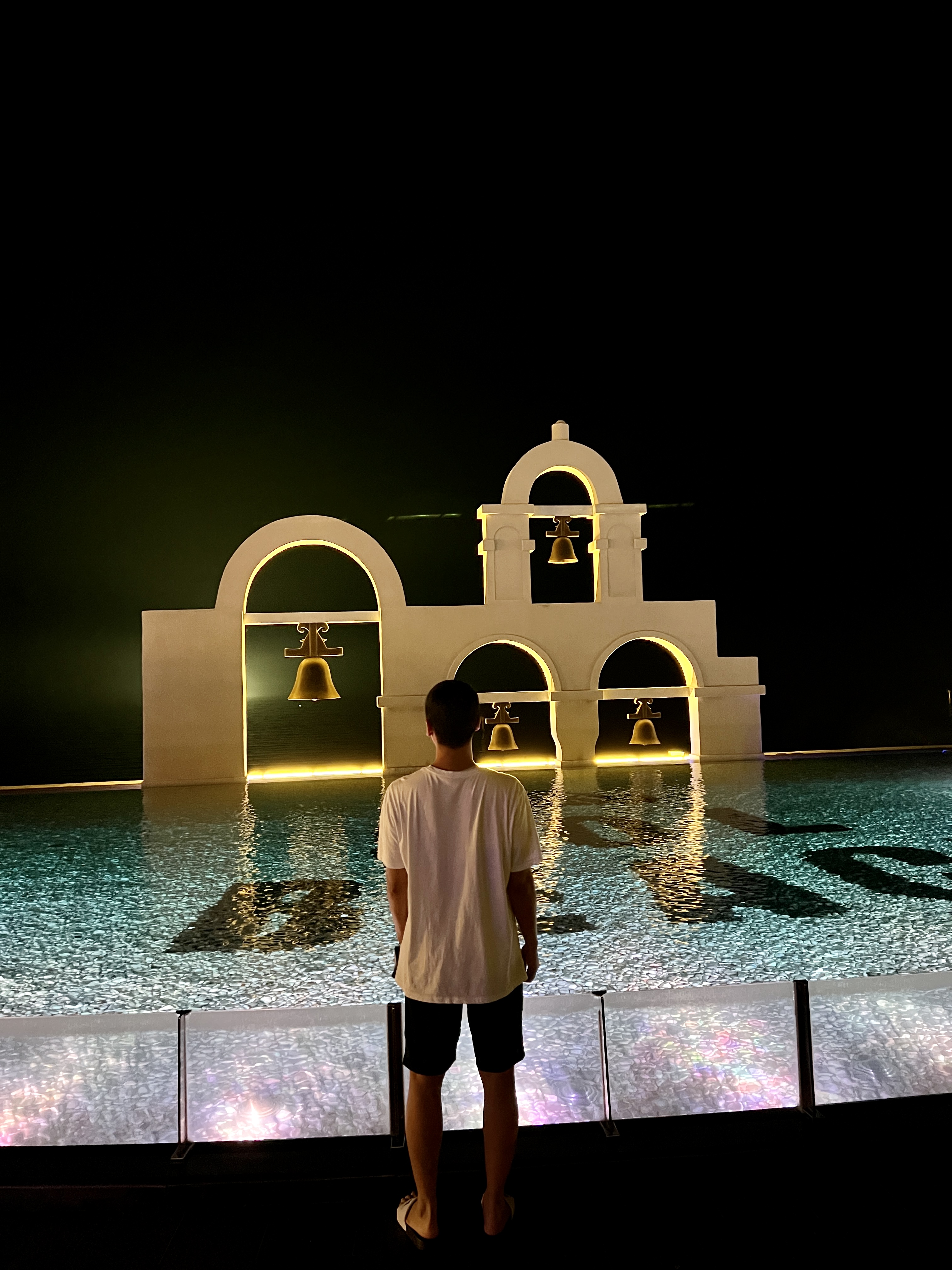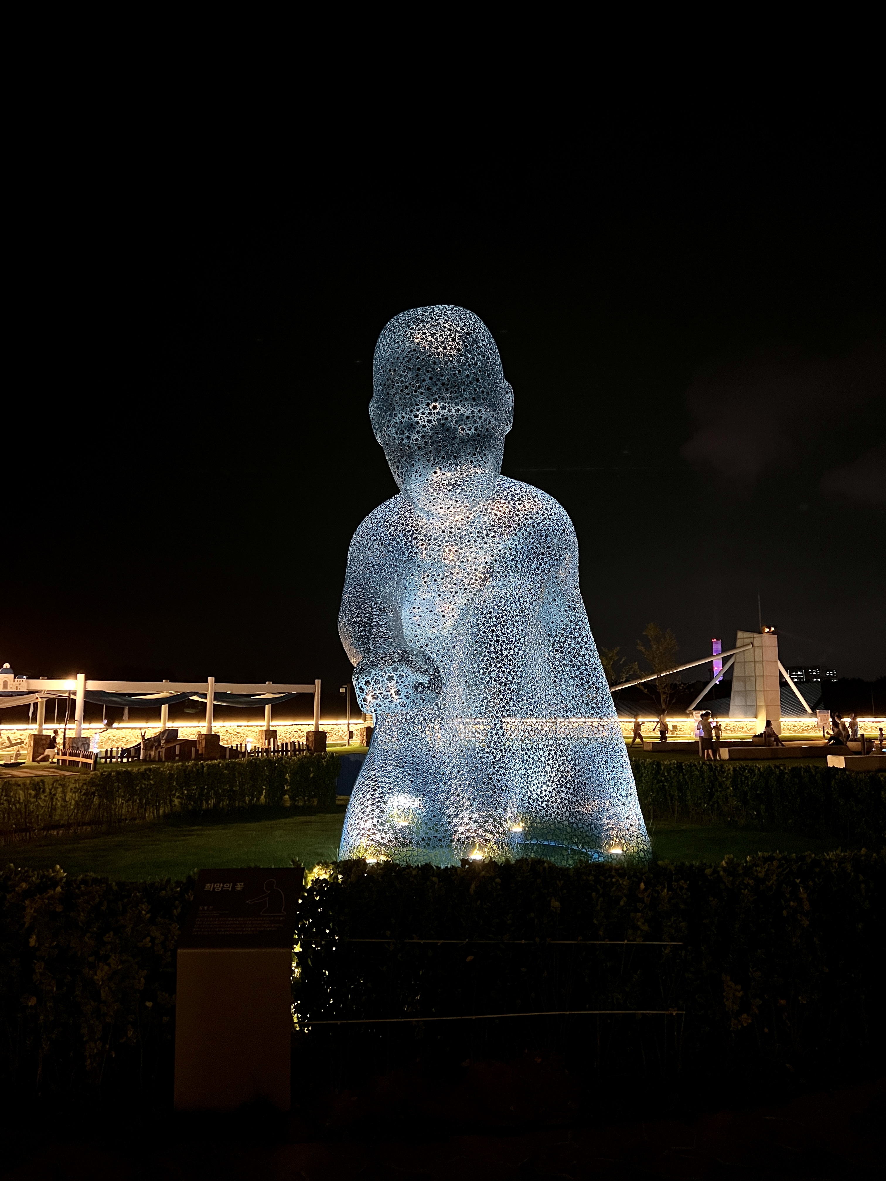 희망의 꽃 조형물과 SOL BEACH 마크 그리고 Santorini 영문글자는 밤에 조명이 들어오기 때문에