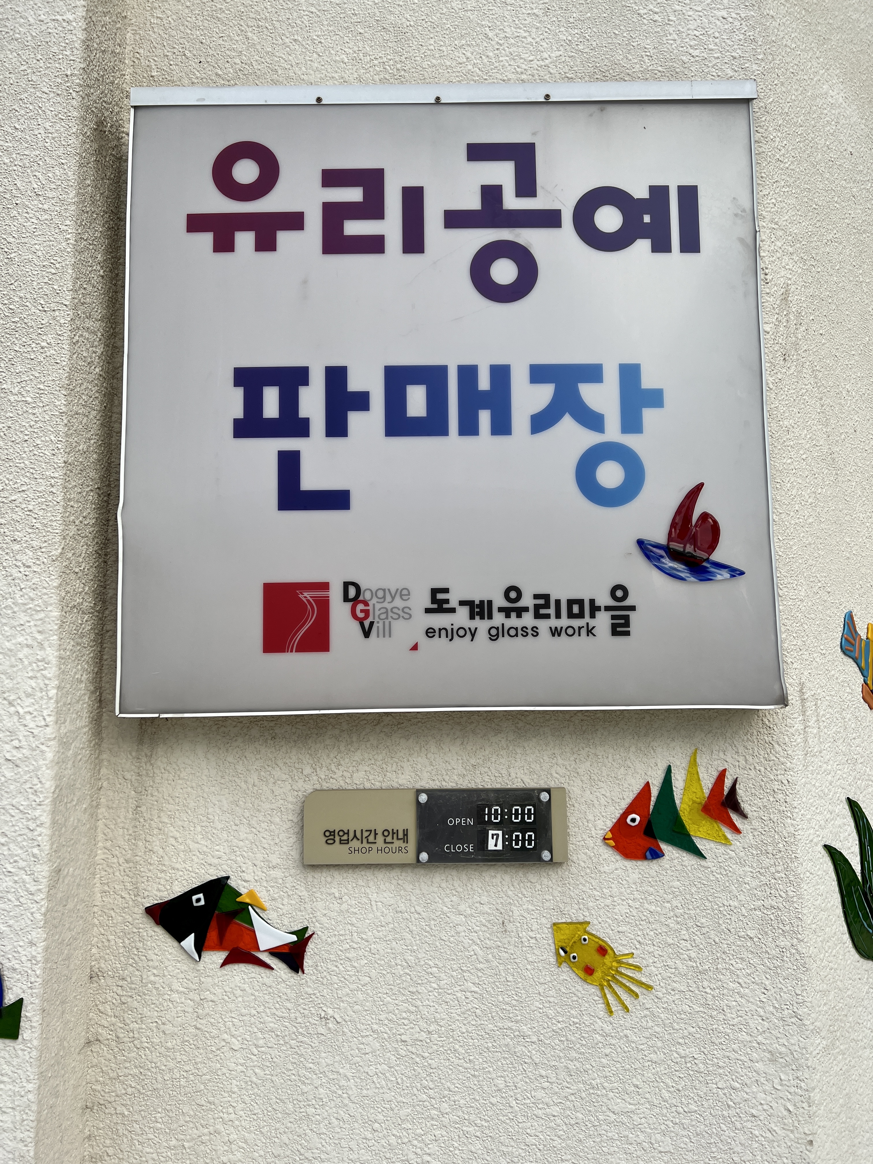 유리공예를 판매하는 매장은 오전 10시부터 오후 7시까지 운영됩니다.