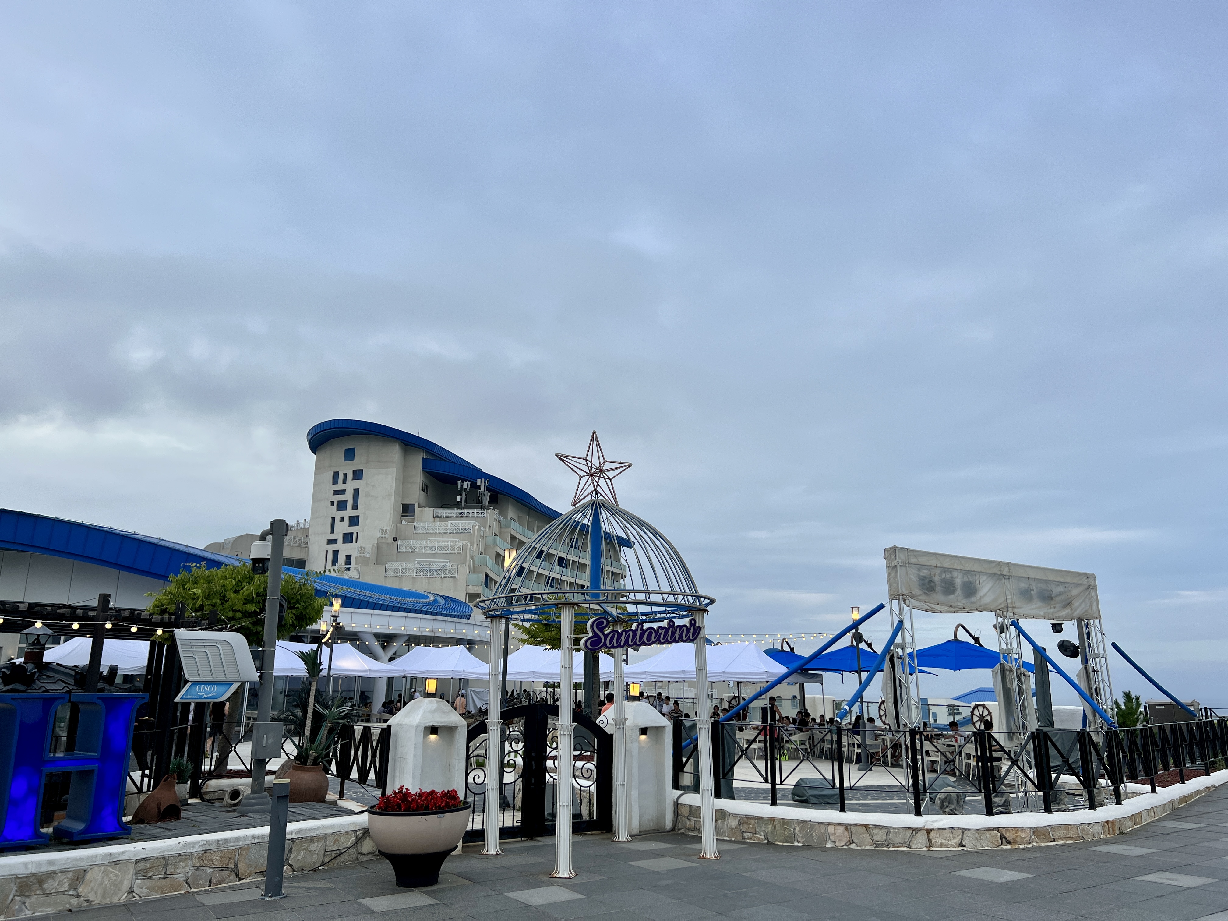 산토리니 광장은 삼척 쏠비치 옥상인 7층에 위치해 동해안 뷰를 조망할 수 있는 멋진 뷰를 보유하고 있습니다.