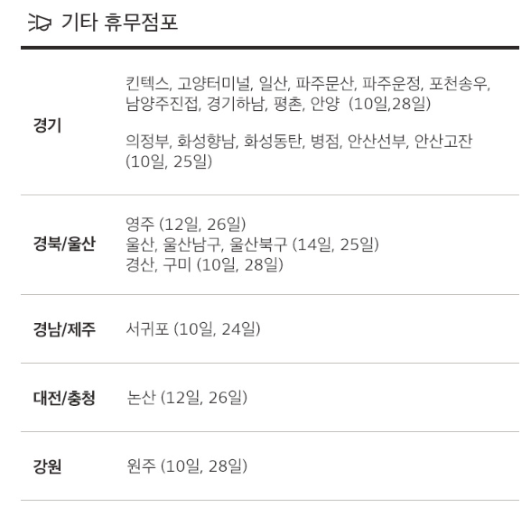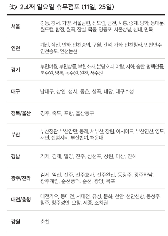 ※ 휴점 점포는 지자체의 상황에 따라 변동이 있을 수 있습니다.