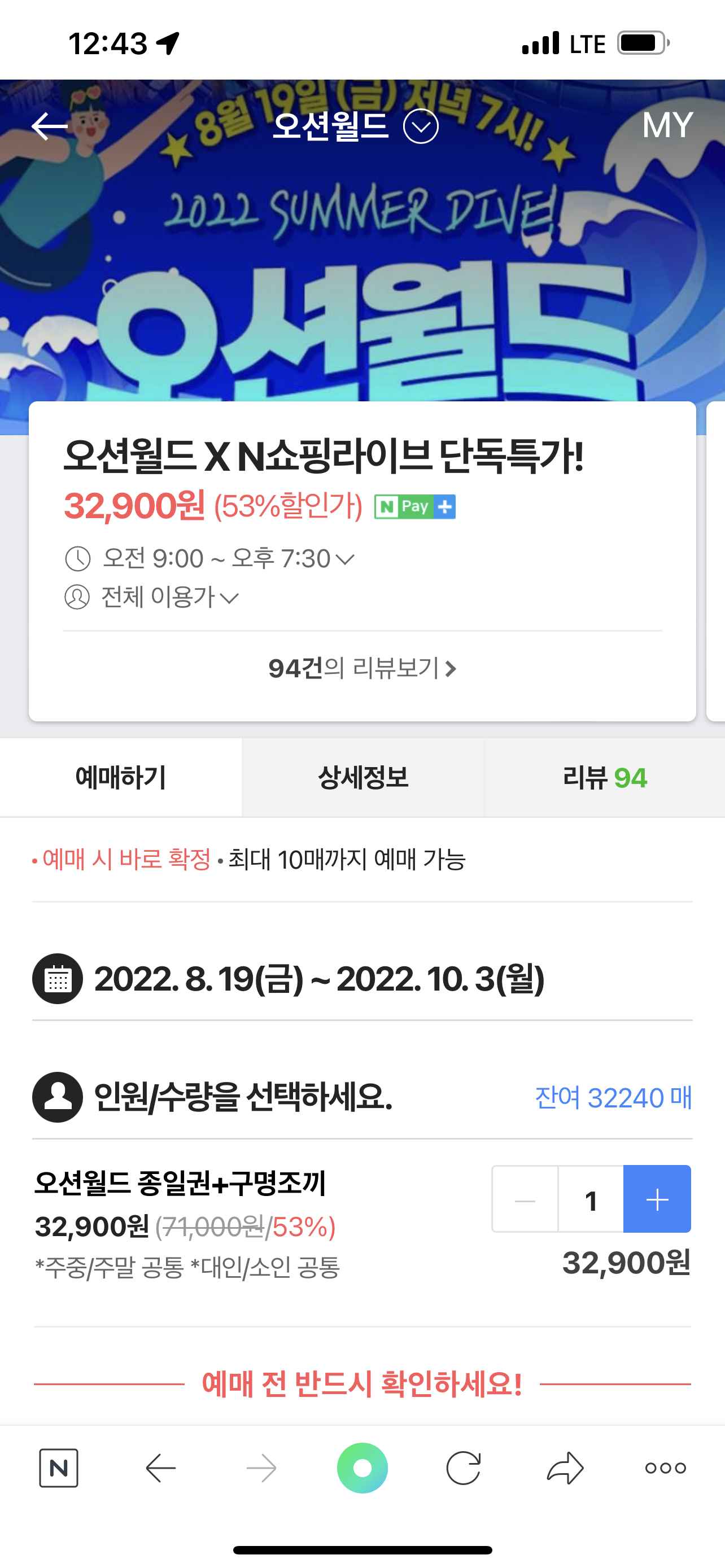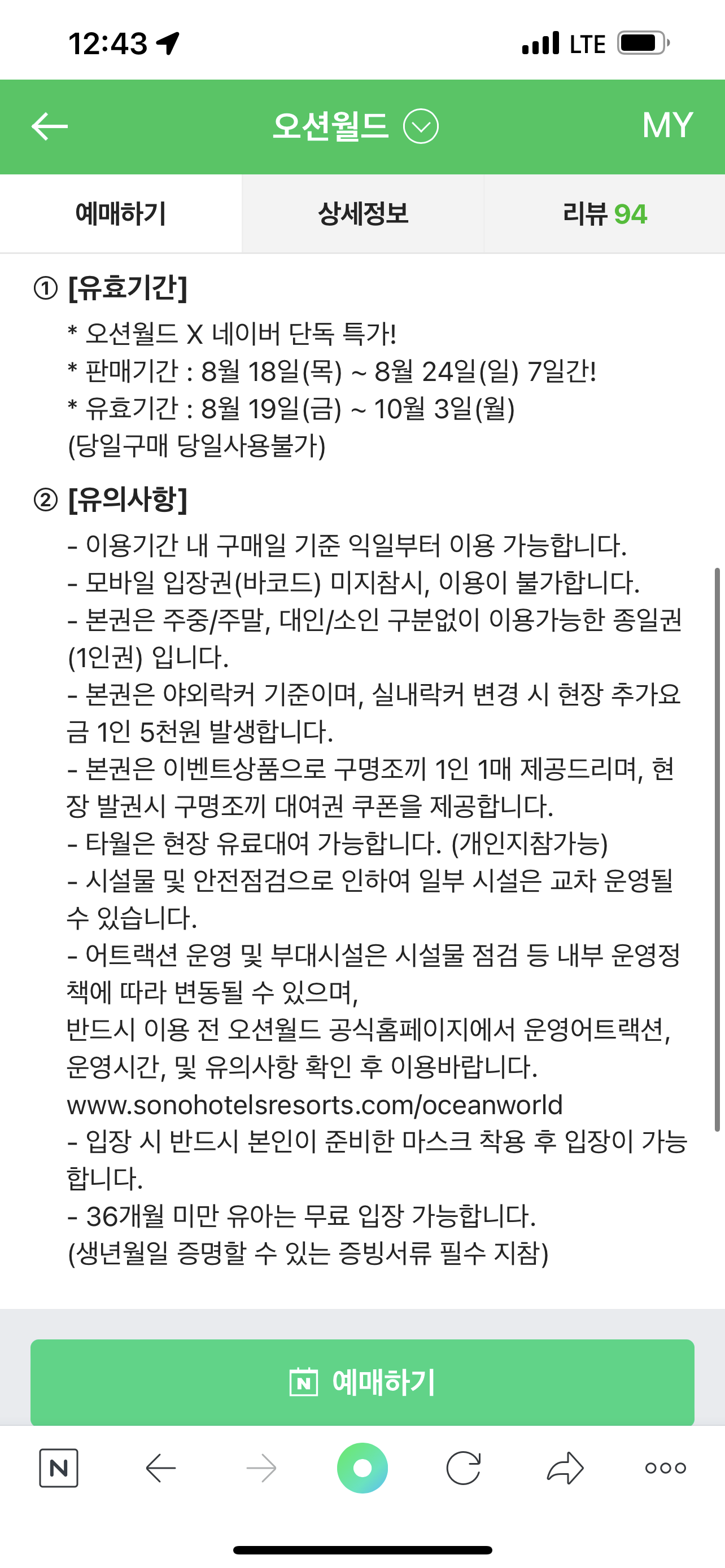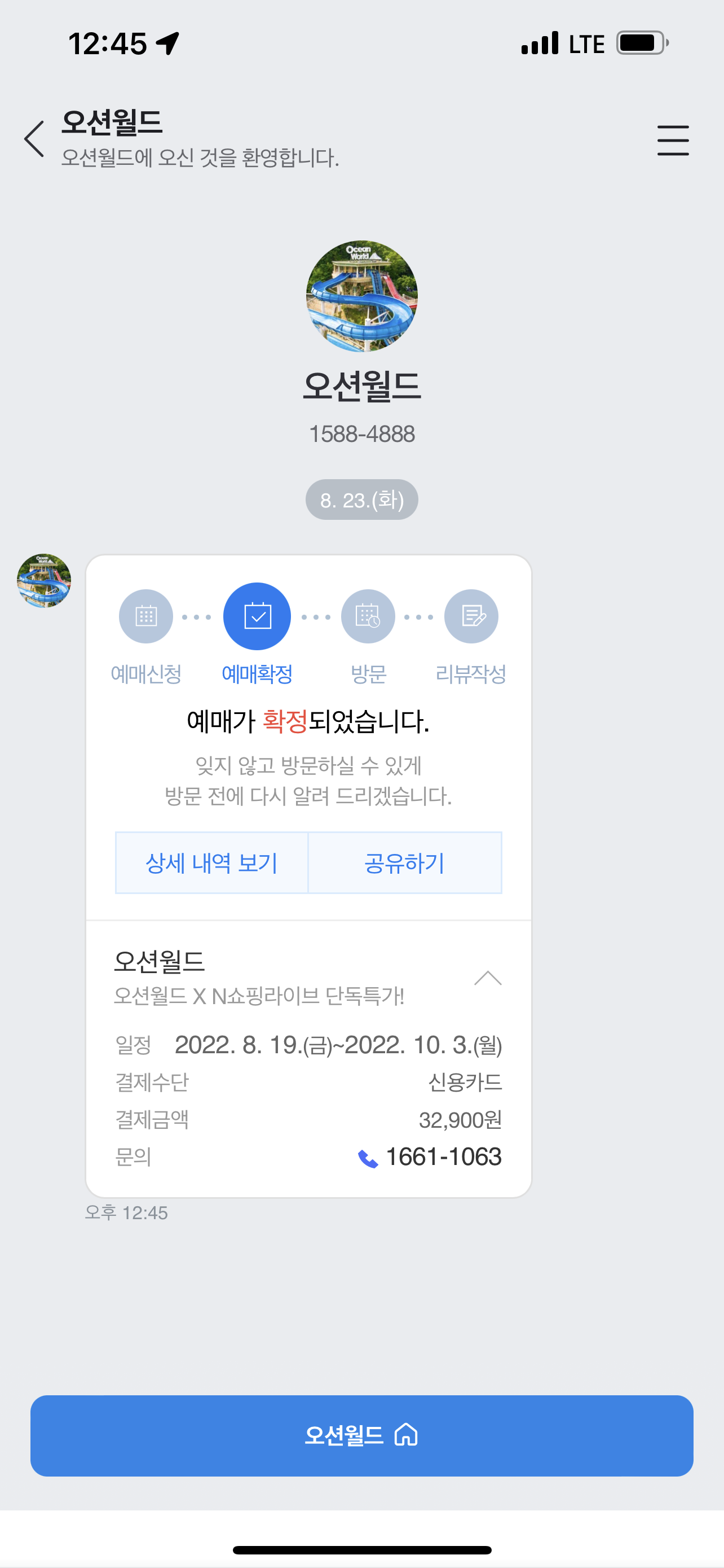 구매하자마자 바로 예매 확정이 되고 오션월드 할인가격으로 입장권을 구매할 수 있습니다.