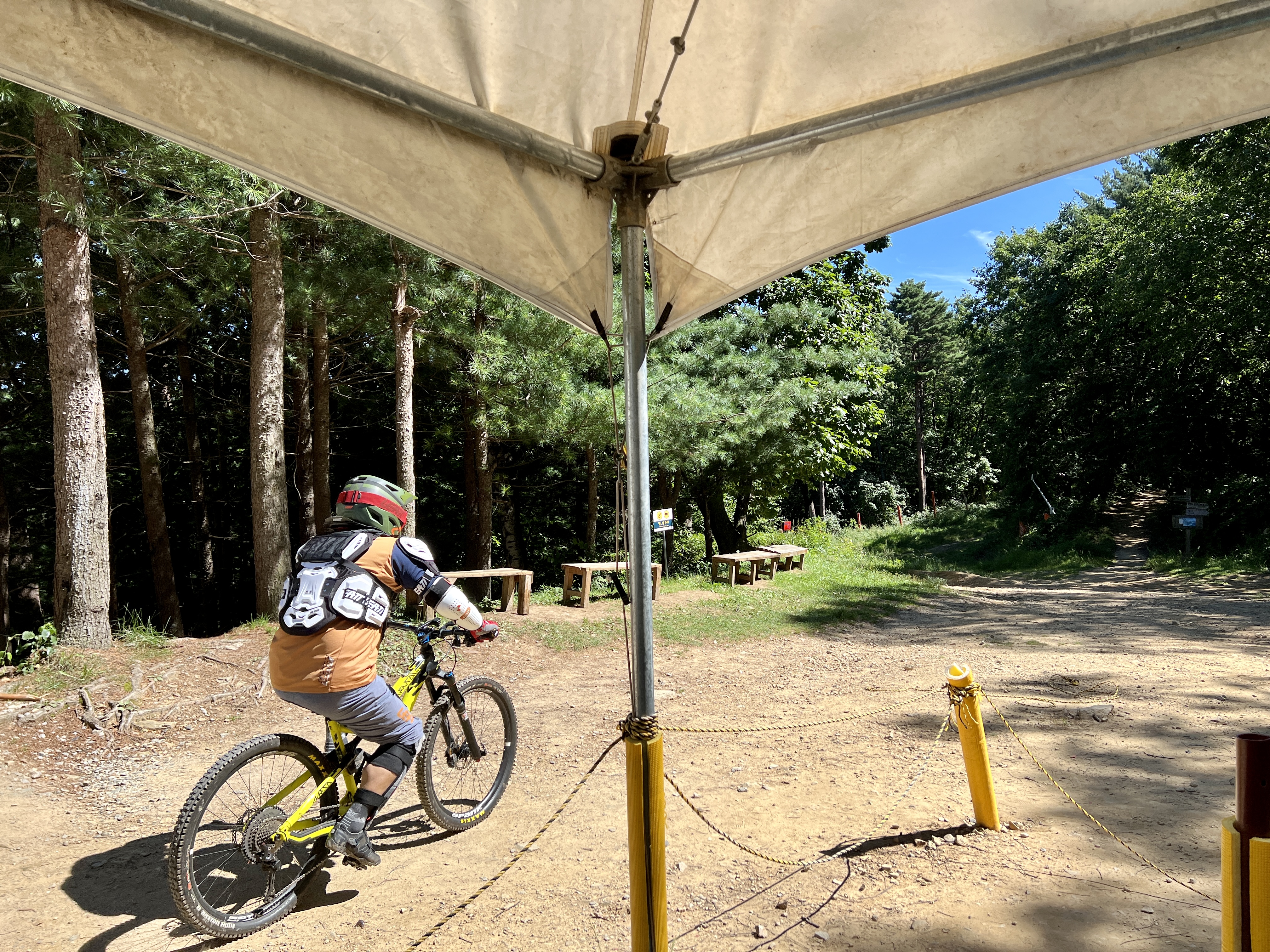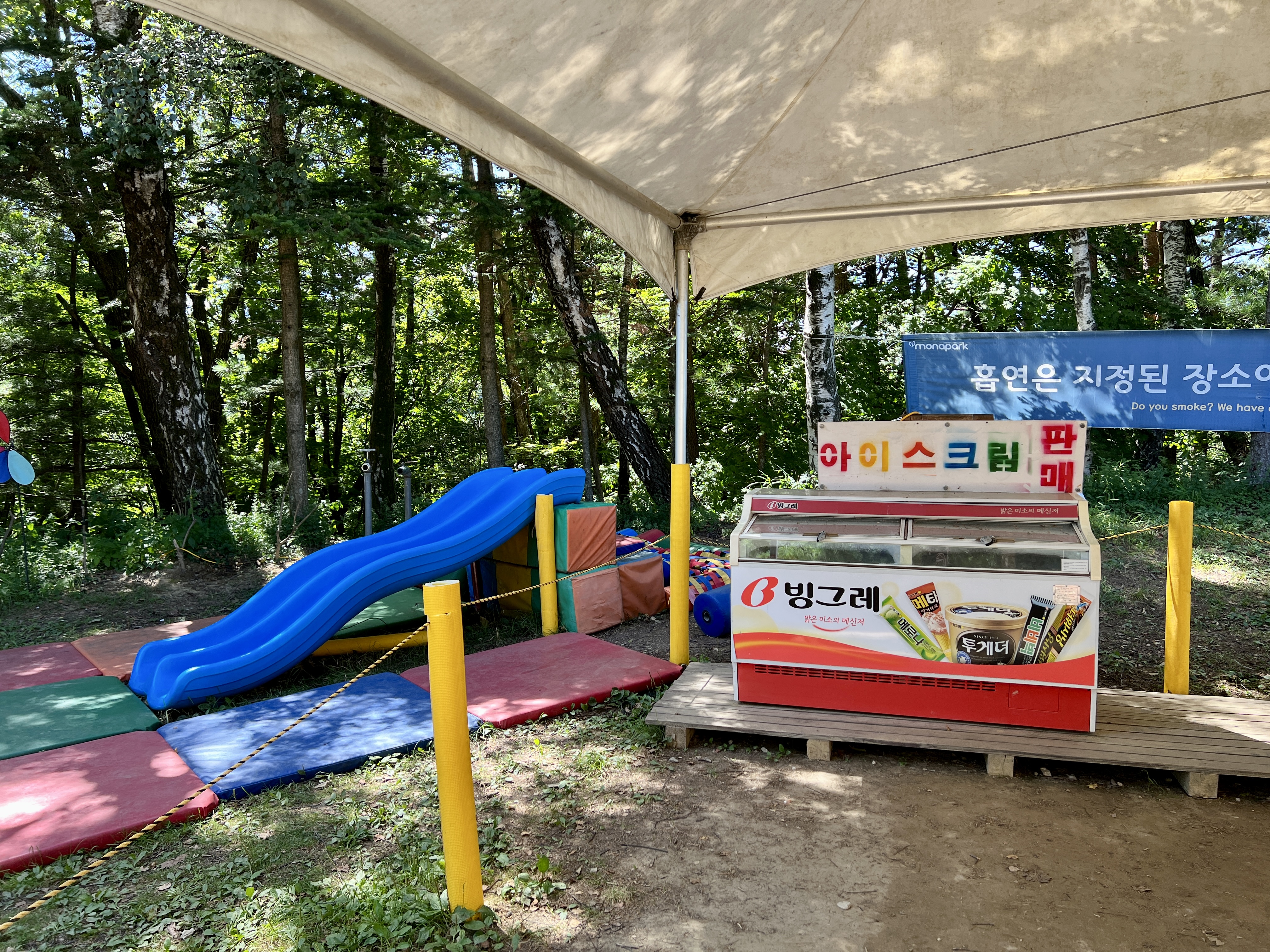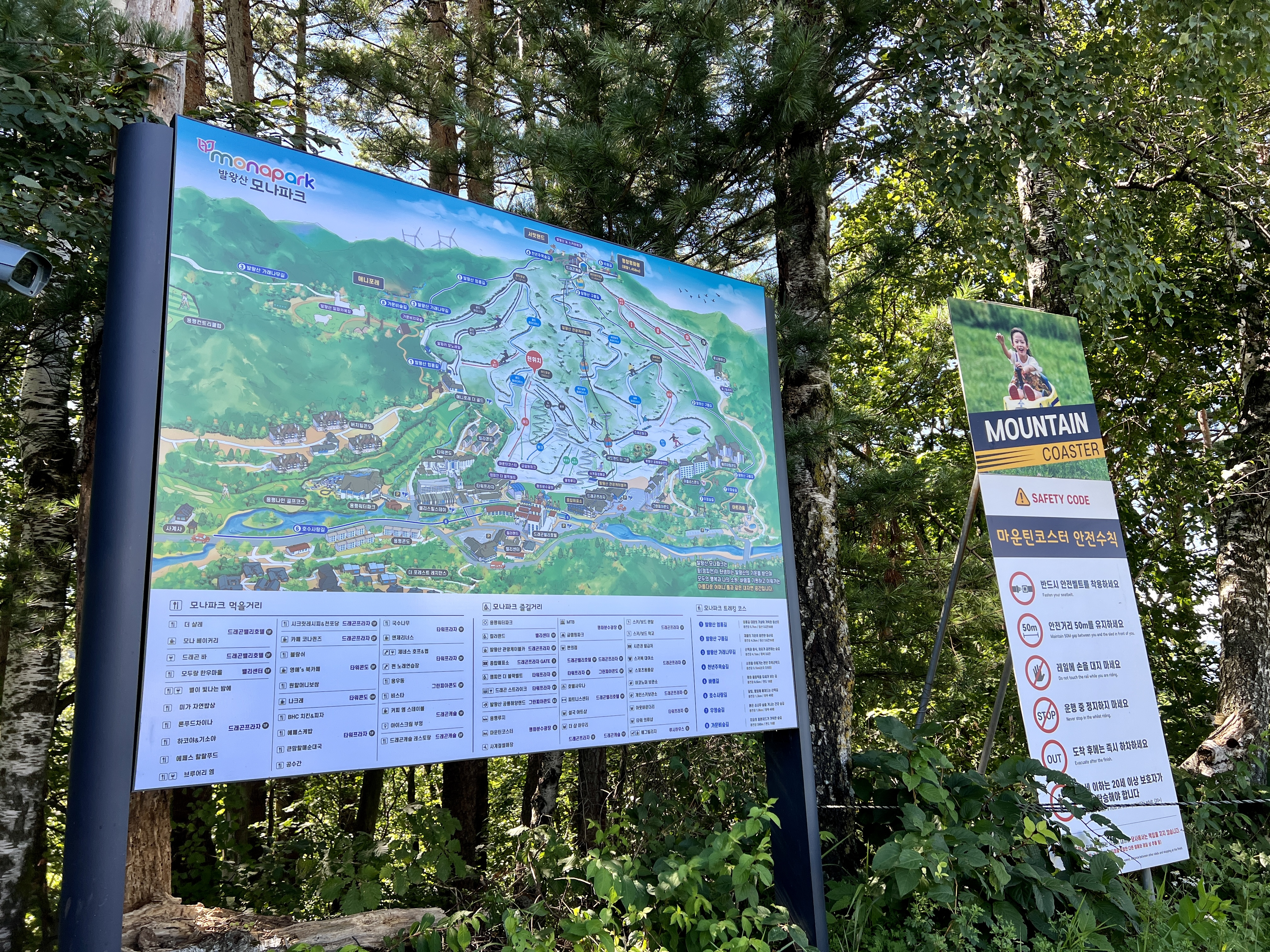 마운틴코스터를 기다리며 안내직원분이 알려주신 사항은 숲속으로 꺽어지는 커브에서