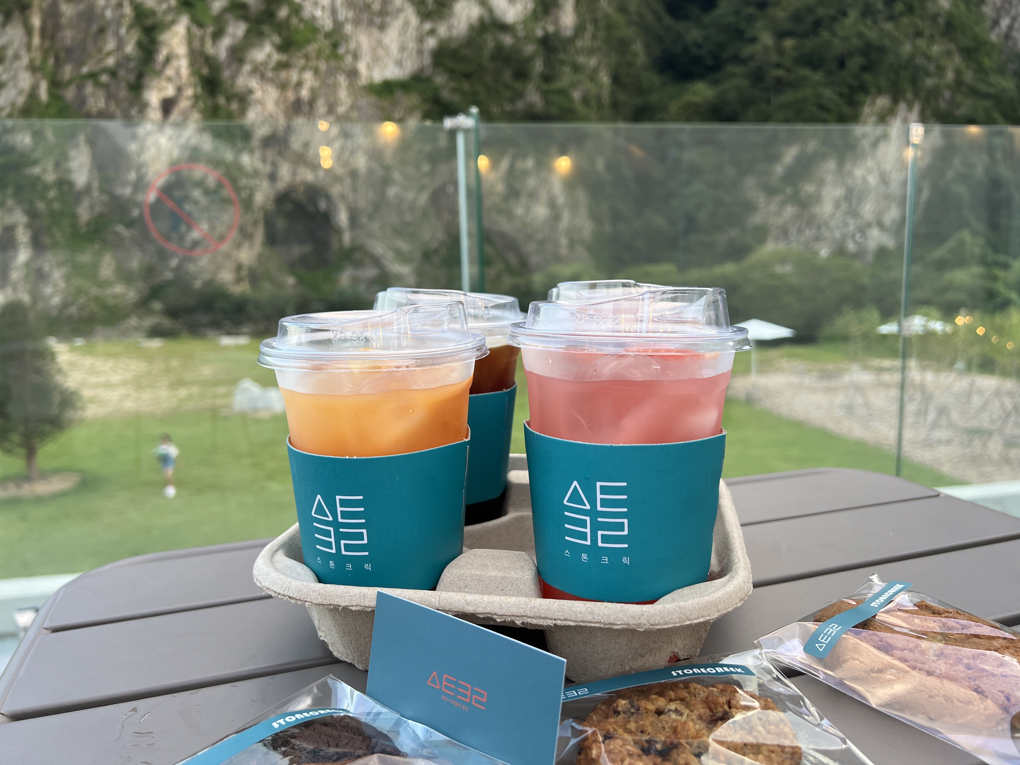2층에 올라가서 시원한 에이드를 마시며 맑은 하늘과 절벽뷰를 보며 멍때리고 있으니