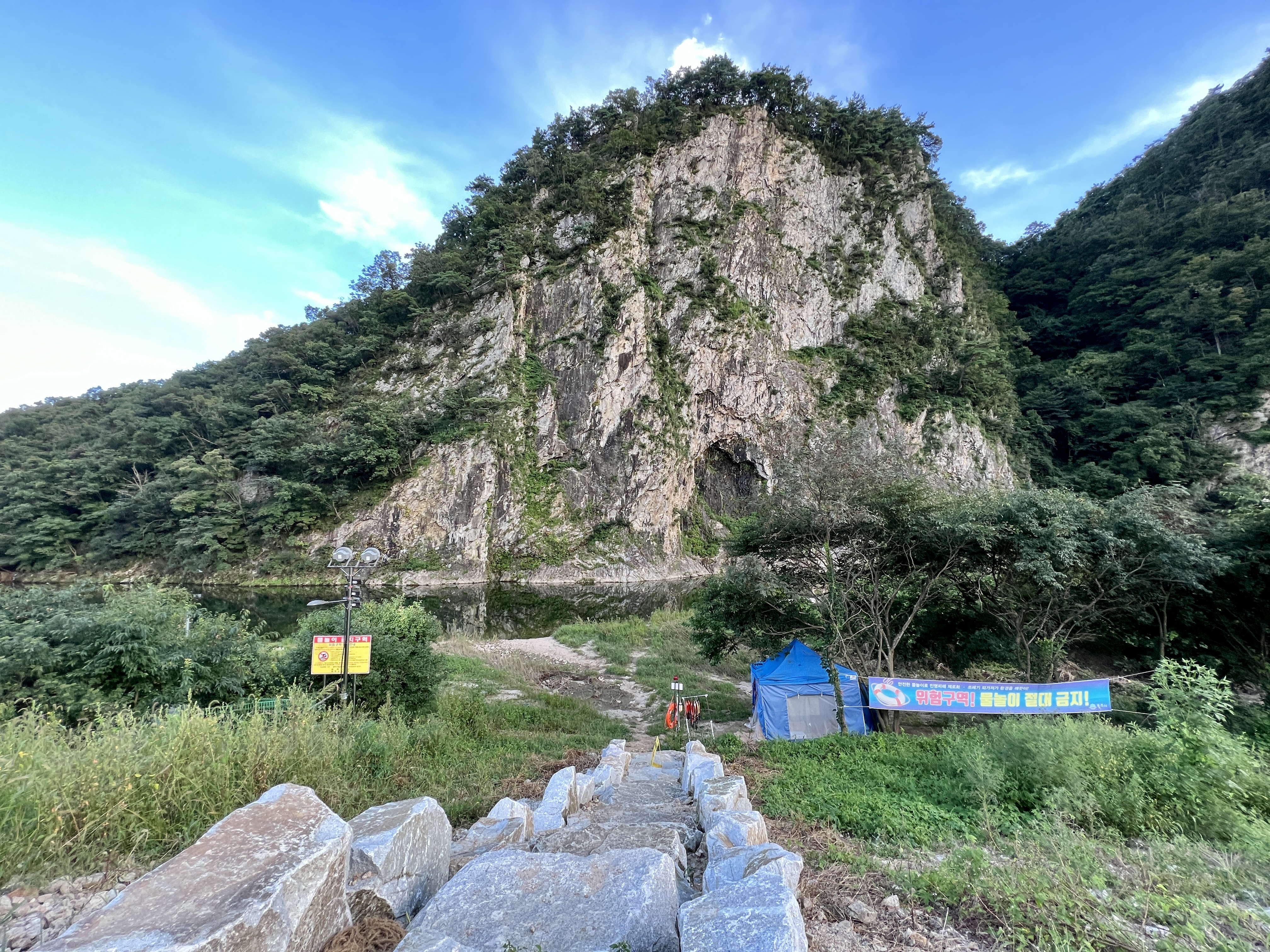 원주 빙벽뷰 카페로 유명한 스톤크릭은 앞에 삼산천을 끼고 멋진 암석 절벽뷰가 아름다운 카페입니다