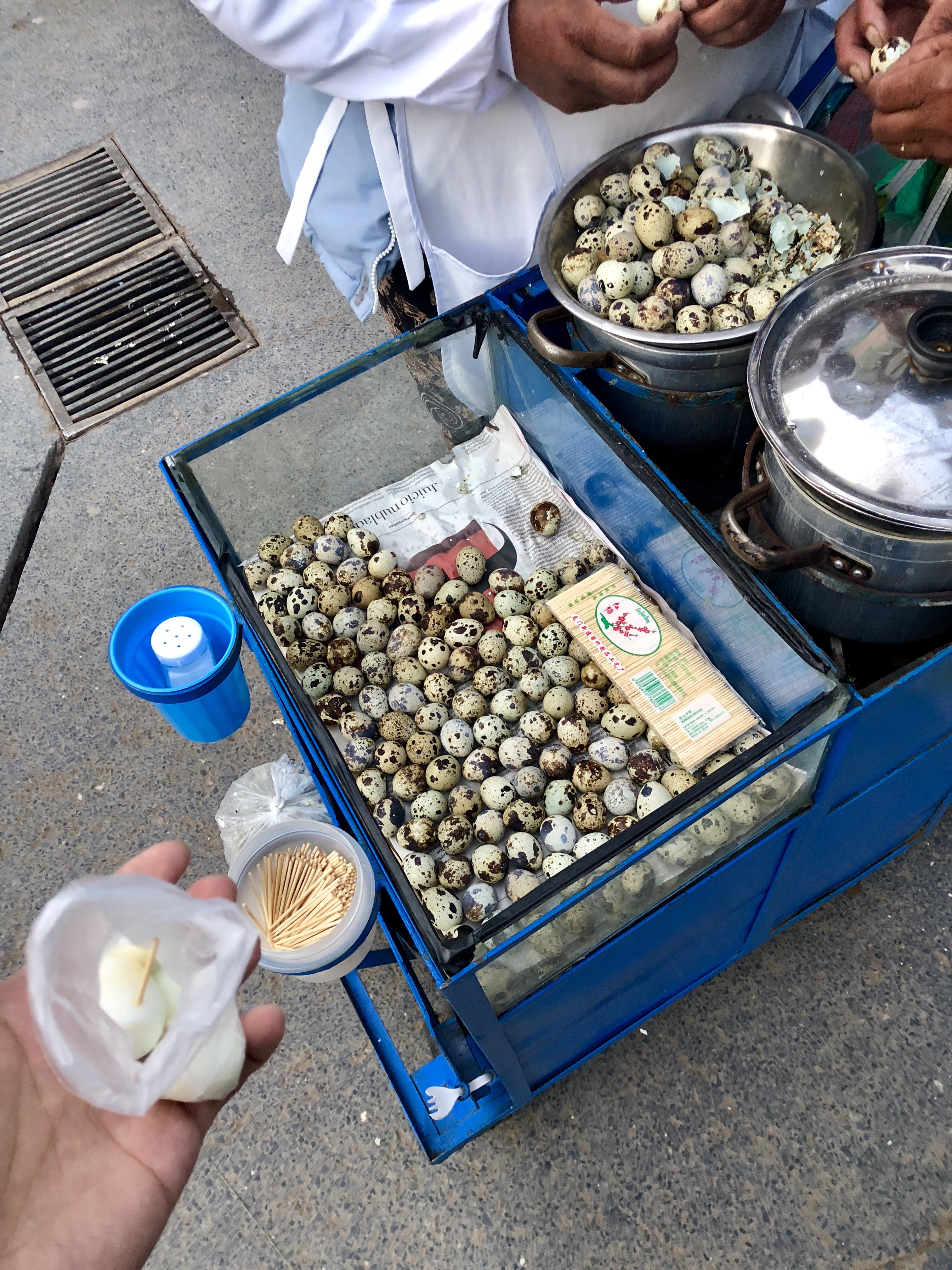 저녁을 먹기전에 출출하여 메추리알을 사먹었는데, 4알에 1sol (300원) 정도에 구매했다.