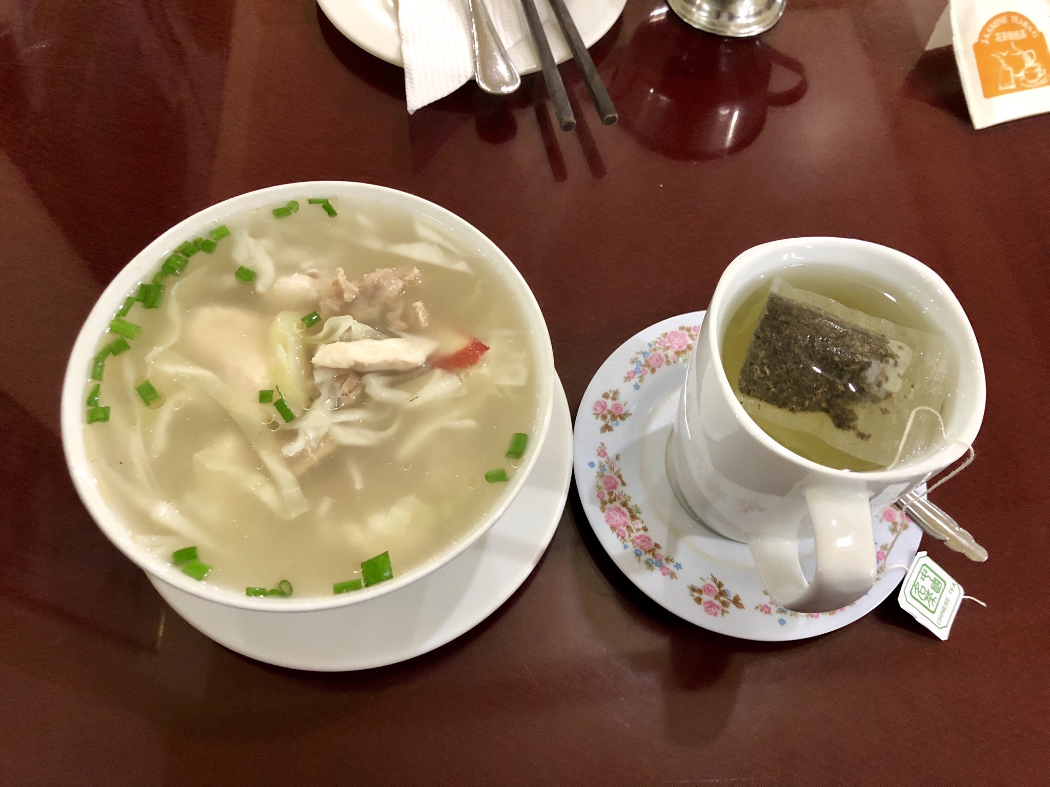 실패 확률이 적은 닭고기 스프만 주문했다.