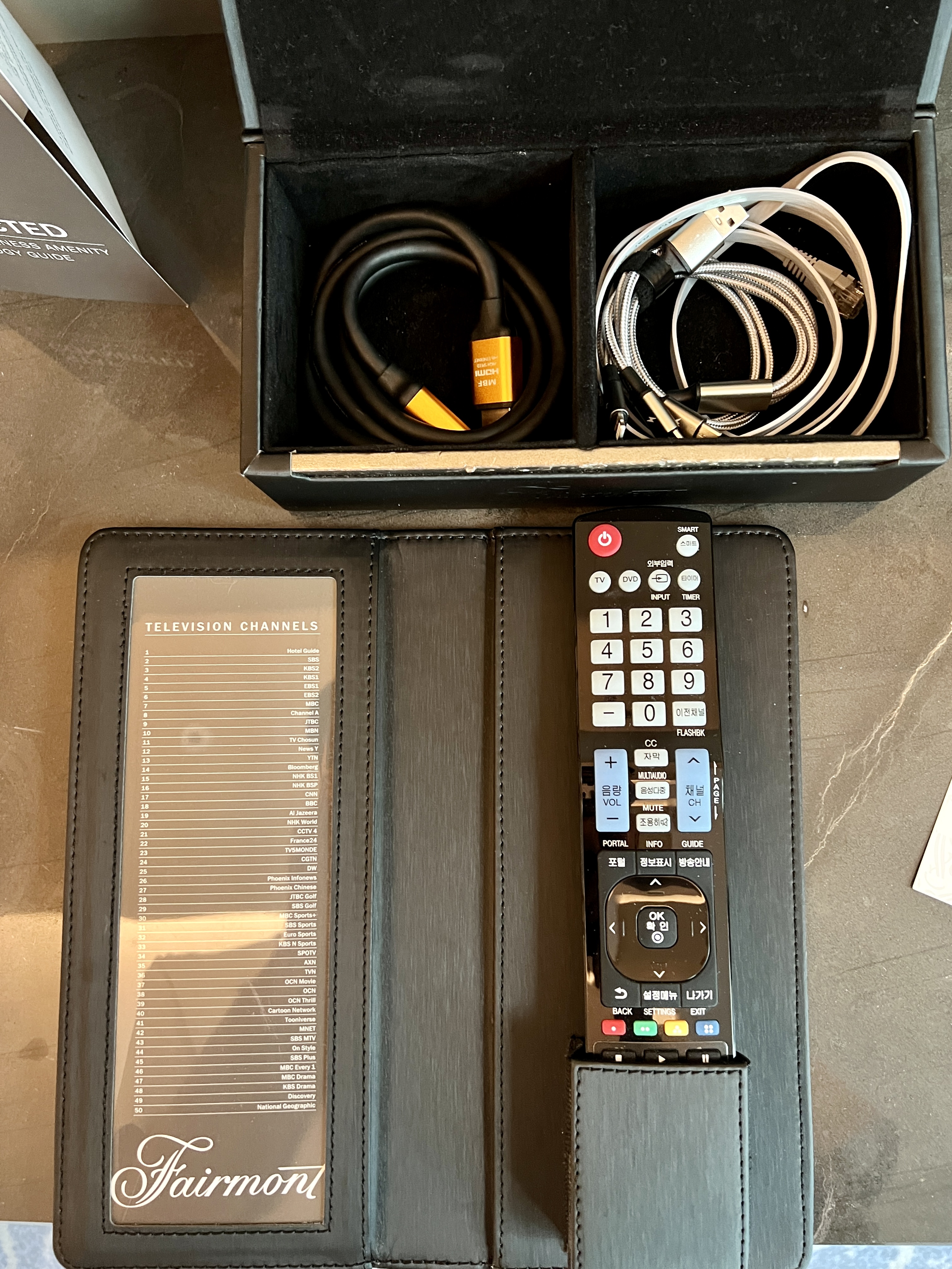 HDMI 케이블 까지 구비하고 있는 페어몬트 앰배서더 서울 디럭스룸이었습니다.