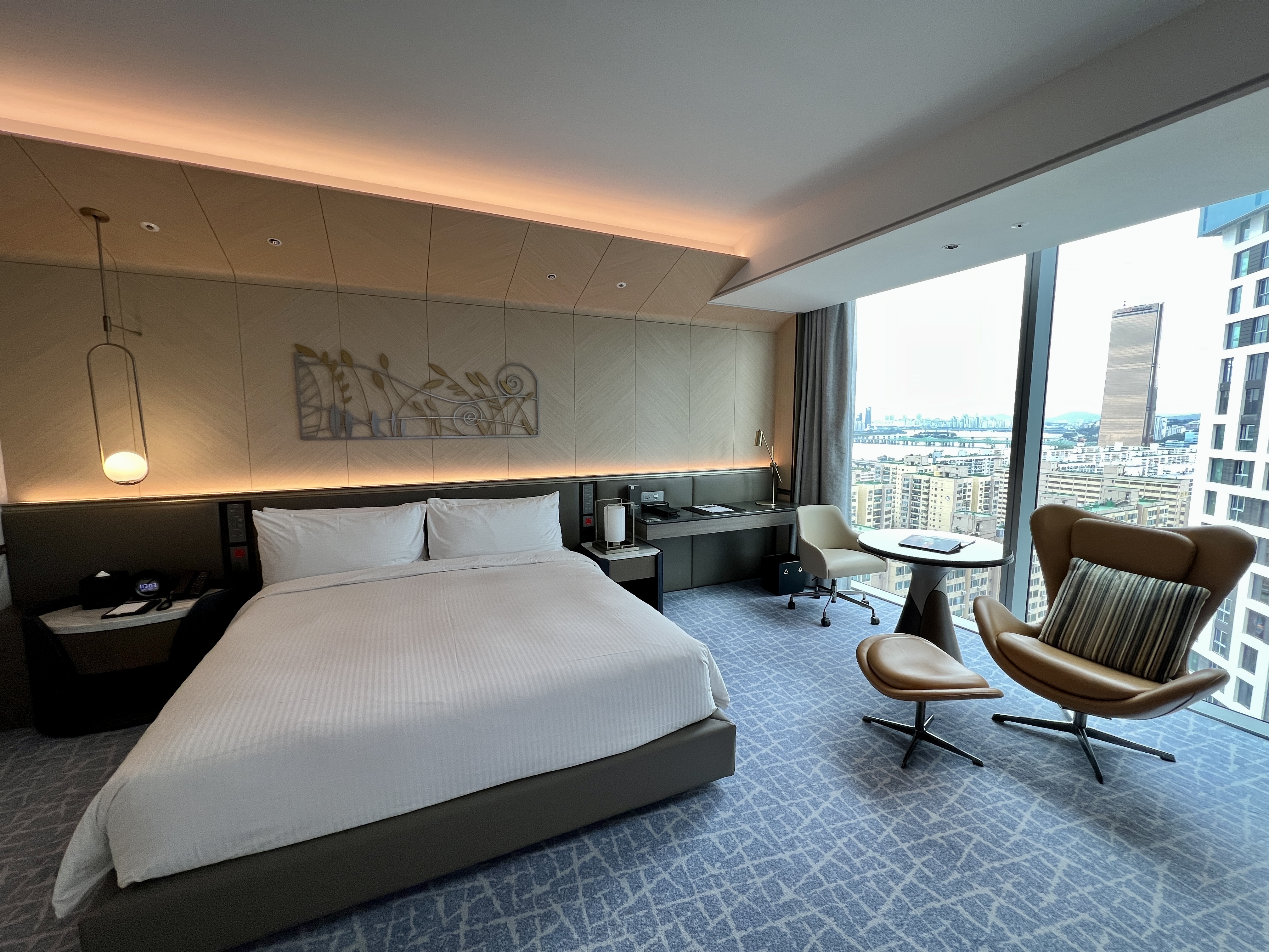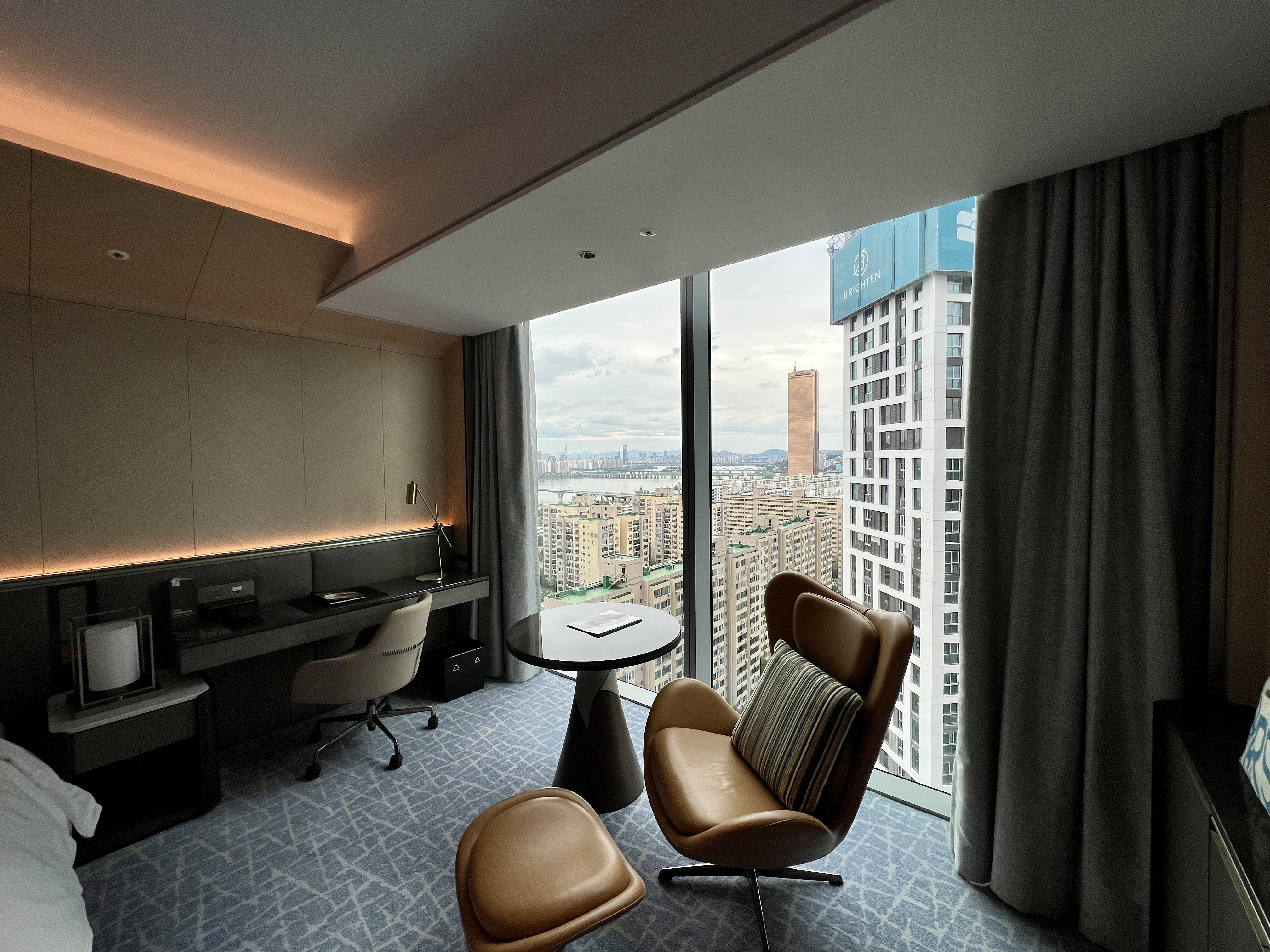 고층으로 한강이 보이는 멋진 조망을 가진 디럭스룸을 배정받을 수 있습니다.