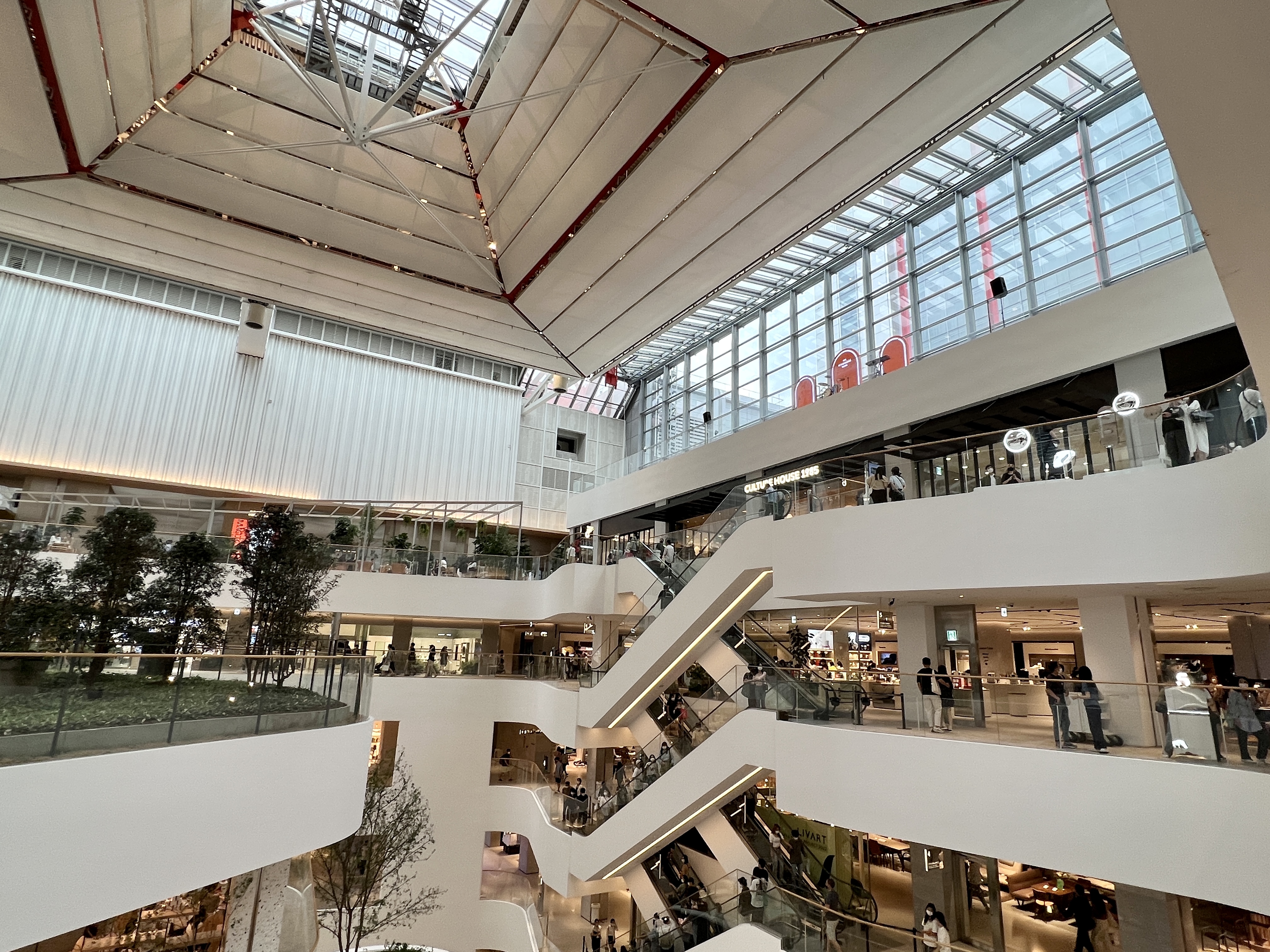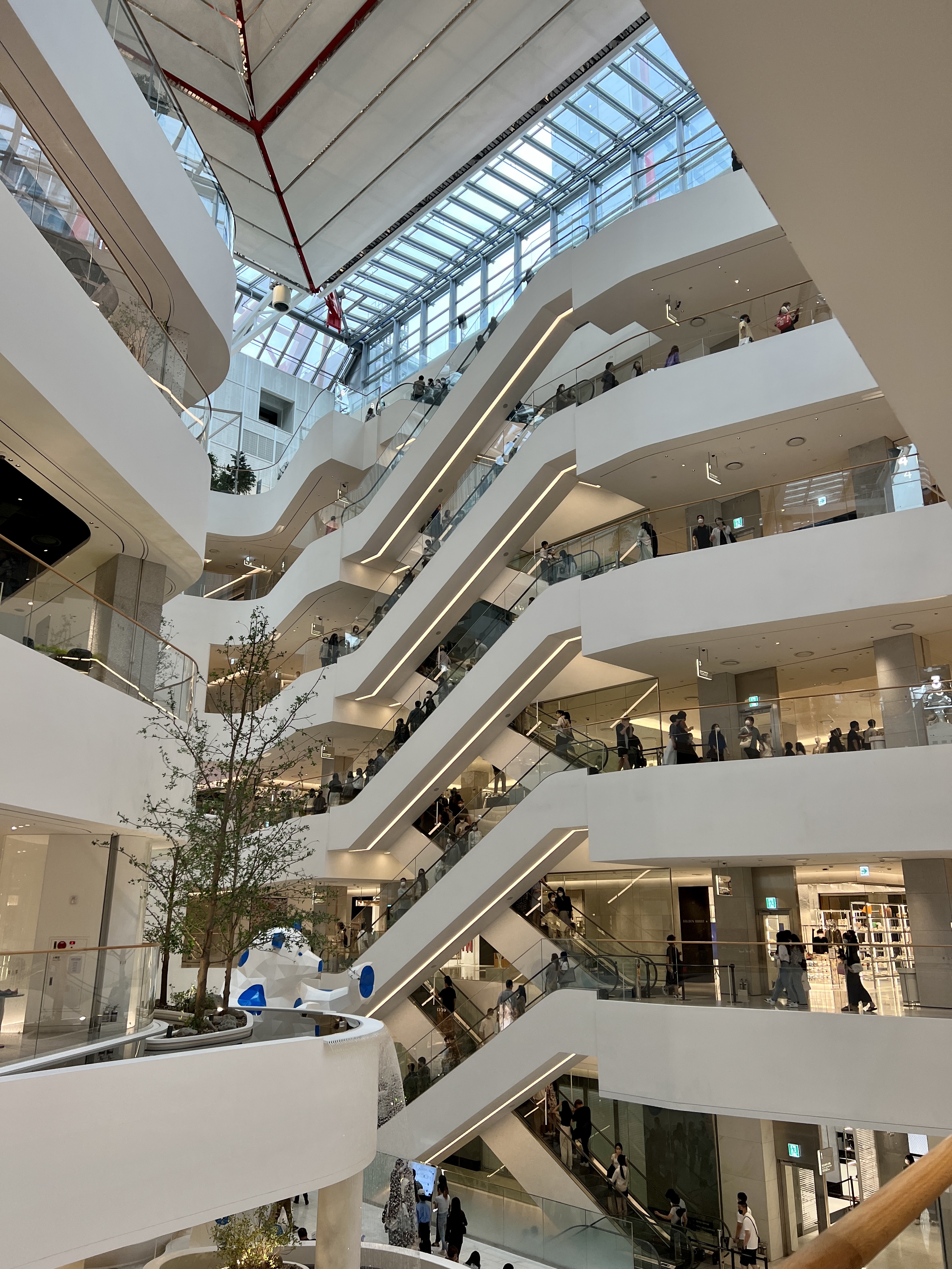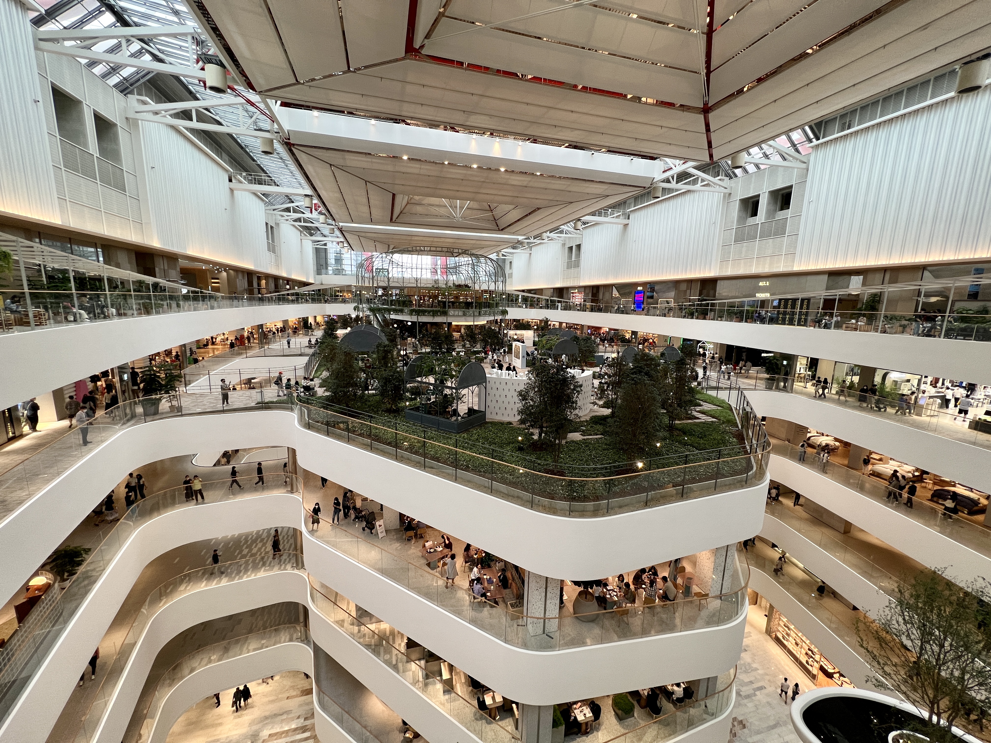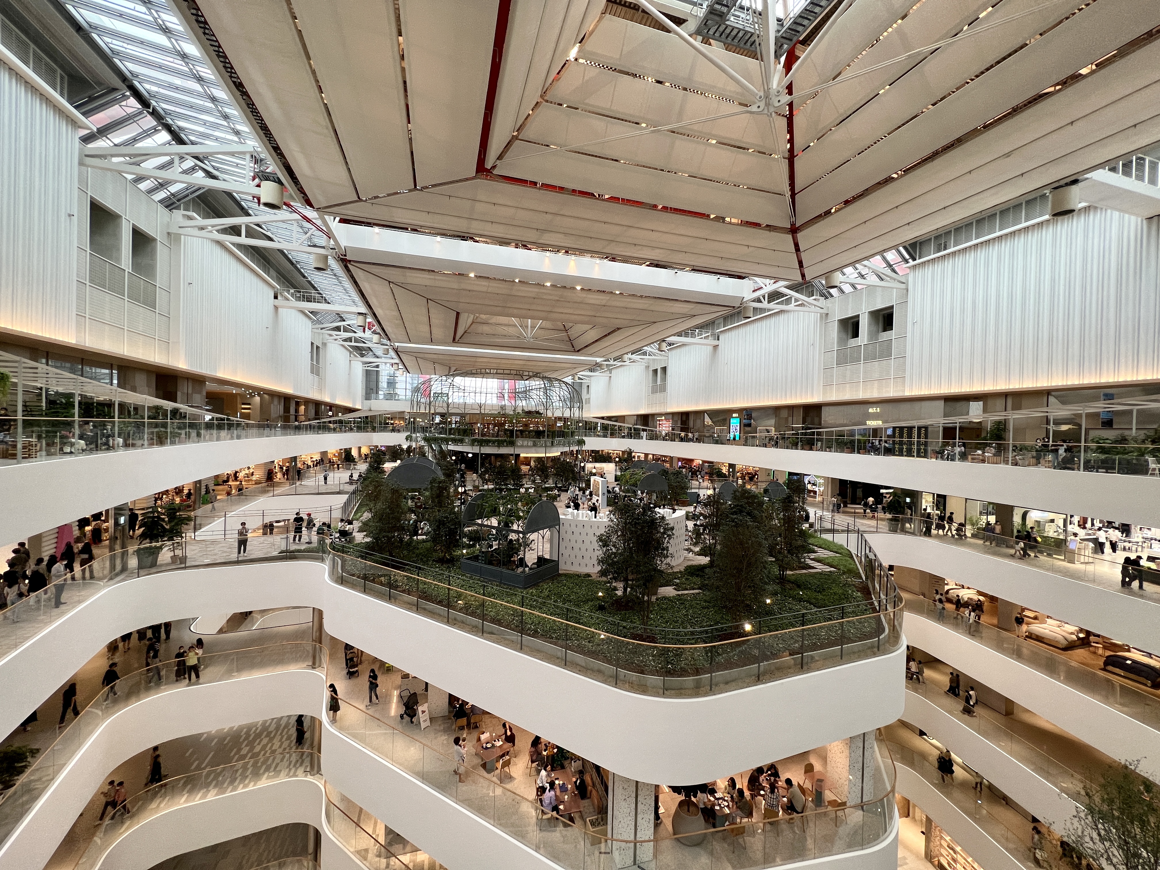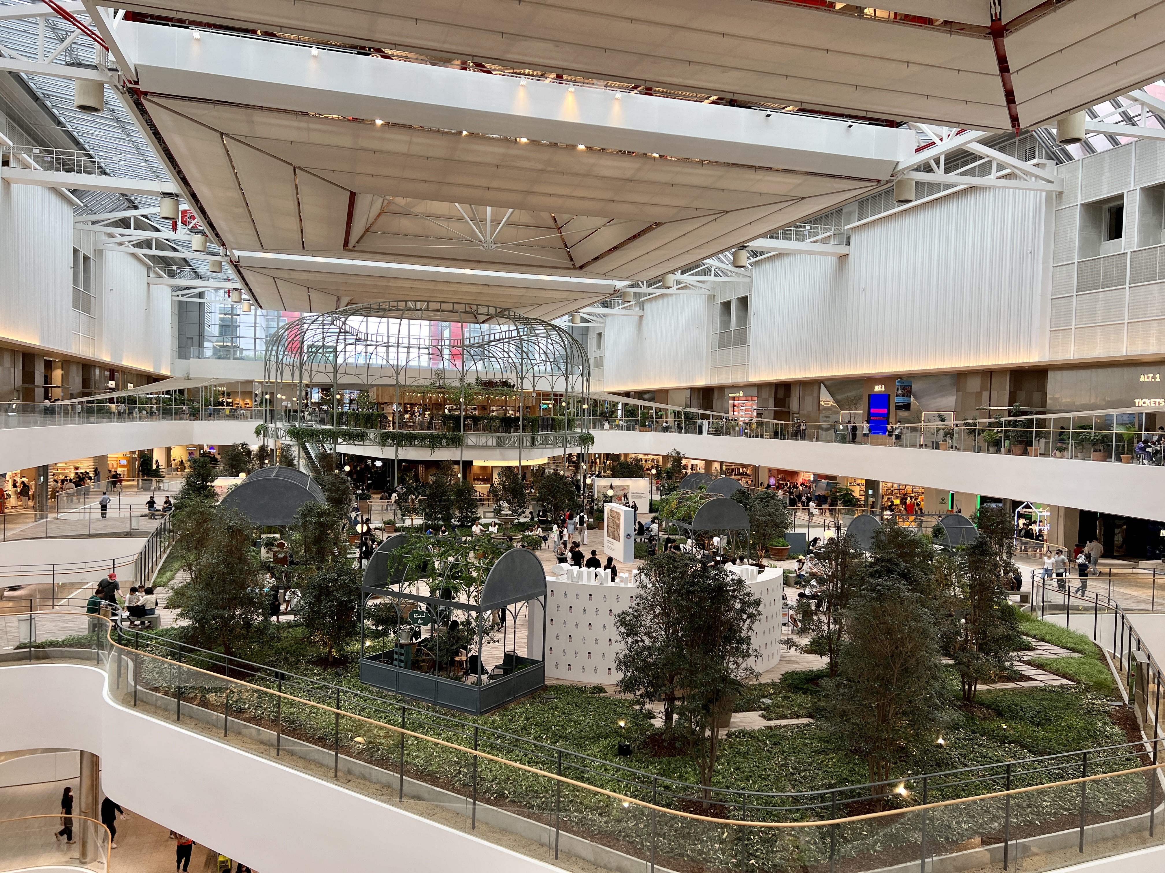 제일 꼭대기 층에는 중간에 정원처럼 꾸며진 카페가 있어 천장이 투명한 공간에서 숲속에 온 것 처럼