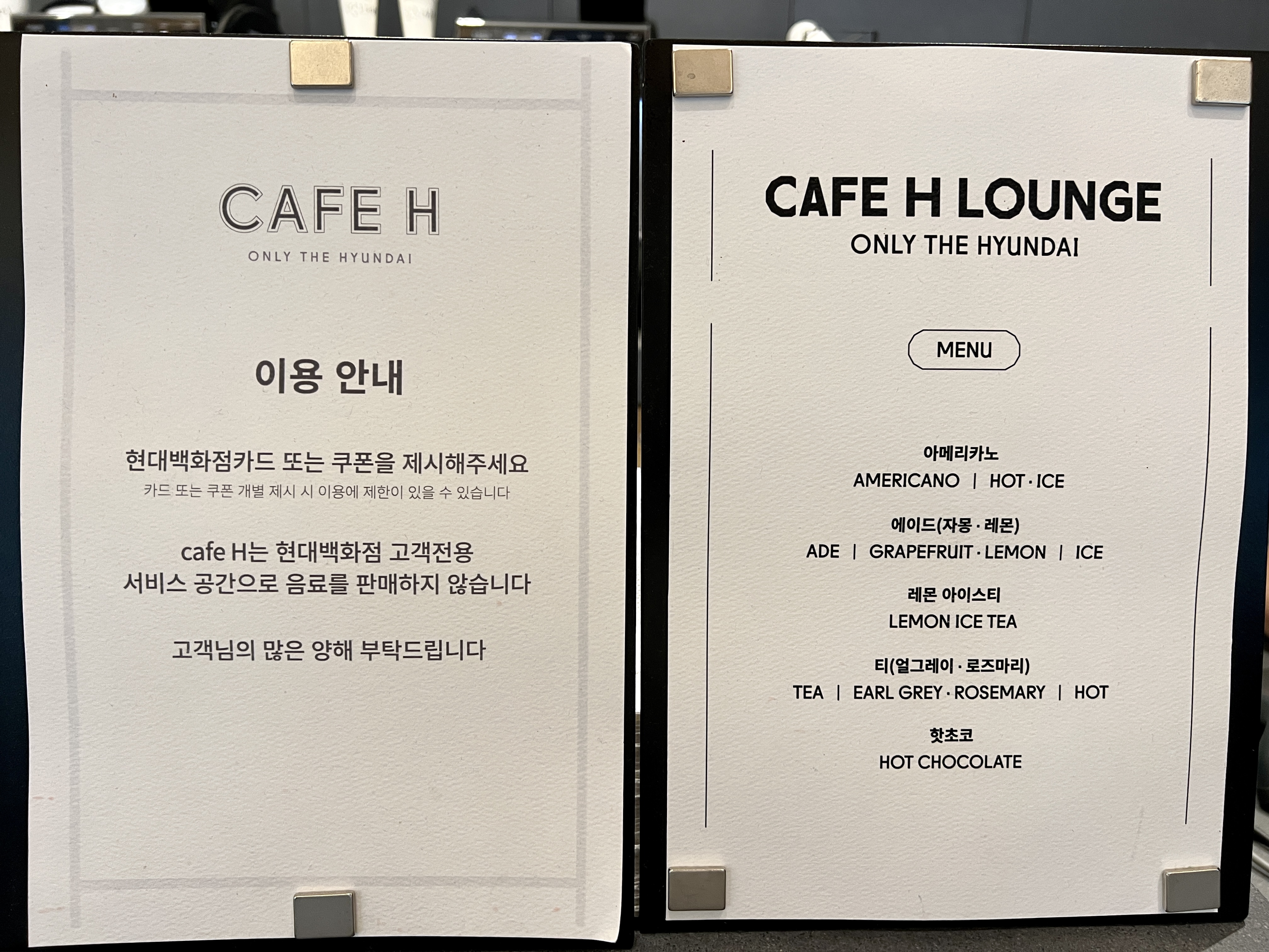 이 CAFE H 는 음료를 판매하지 않는 서비스 공간으로, 포인트 회원들에게 음료를 제공하는