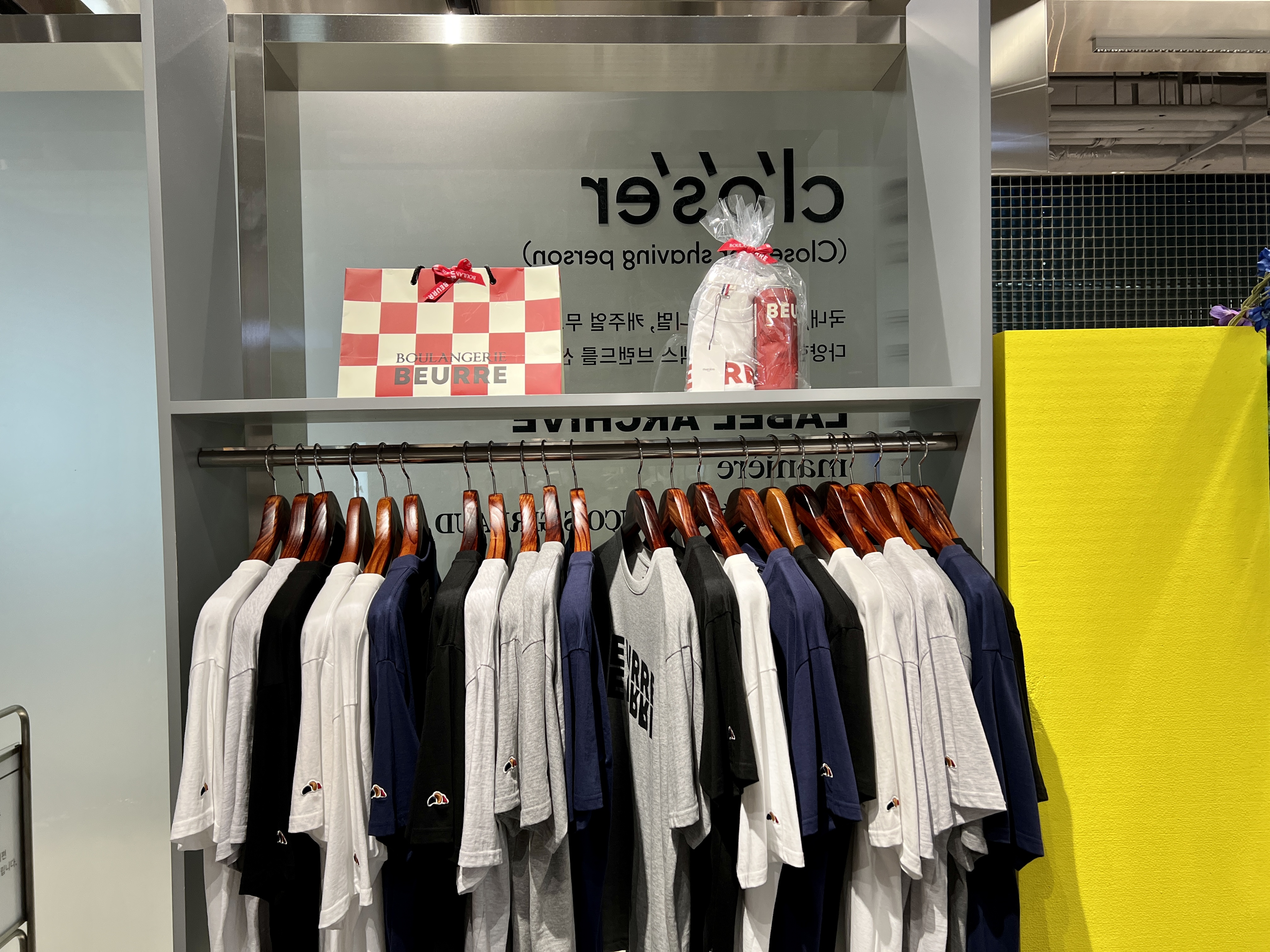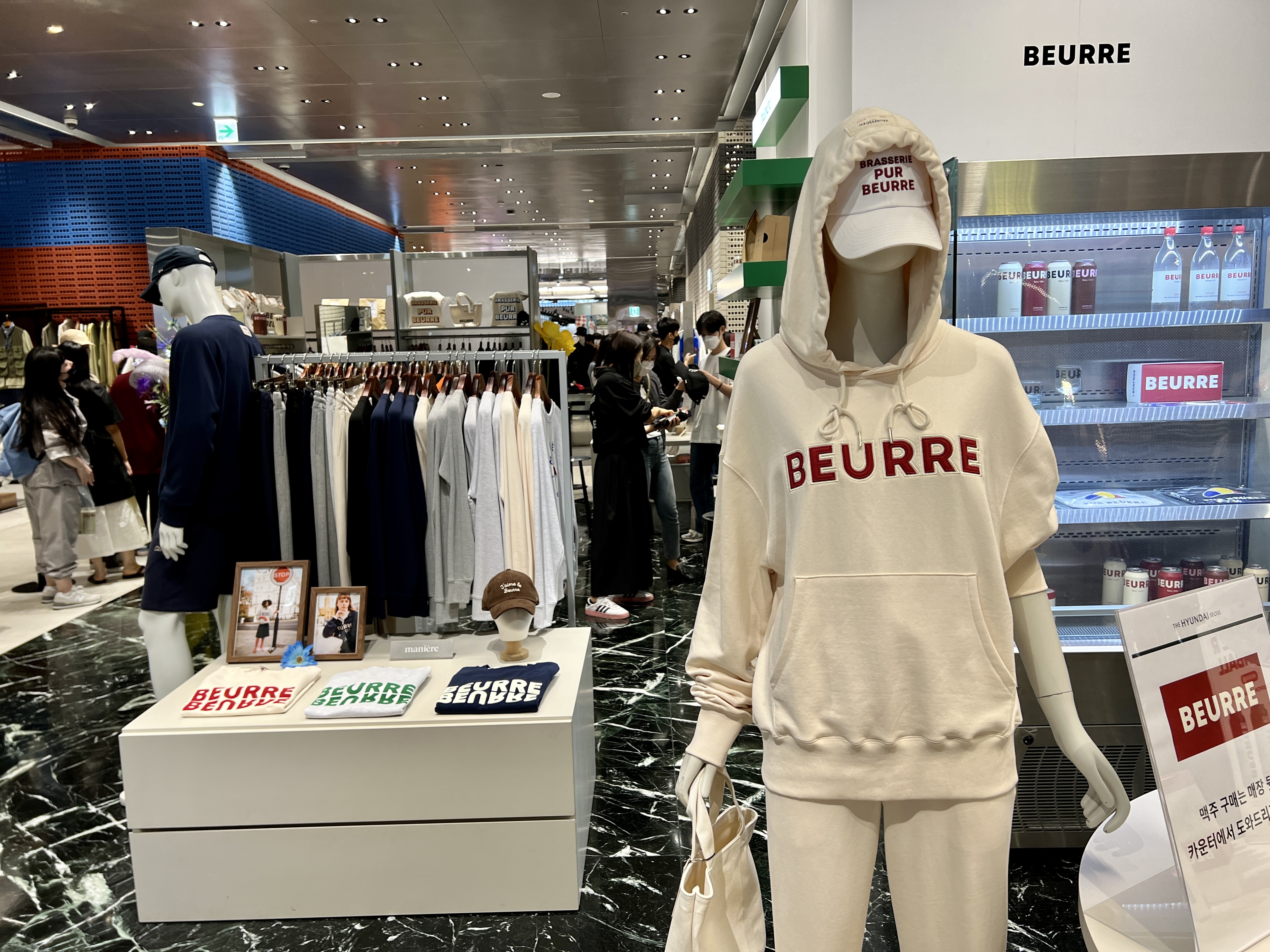 더현대 서울 버터맥주 매장은 굿즈와 옷도 판매하고 있습니다.