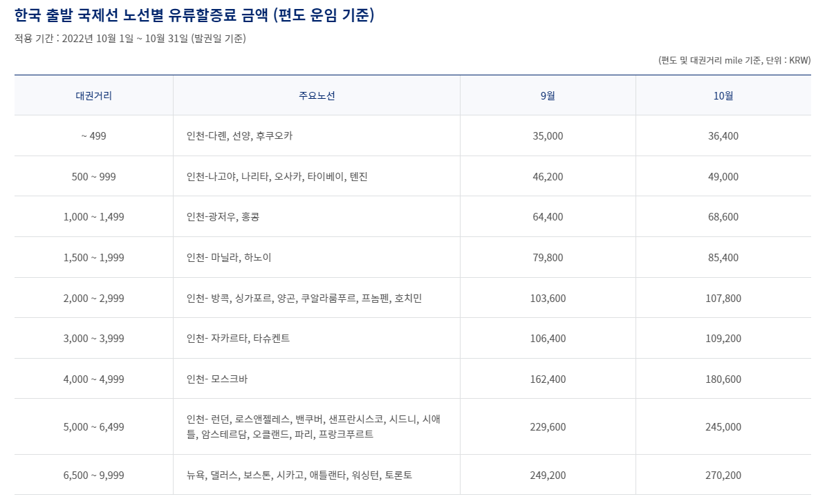2022년 10월 유류할증료 정보가 많은 도움이 되었기를 바랍니다.