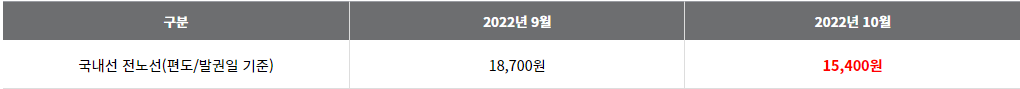 - 발권 적용일 : 2022년 10월 1일 ~ 2022년 10월 31일(발권일 기준)