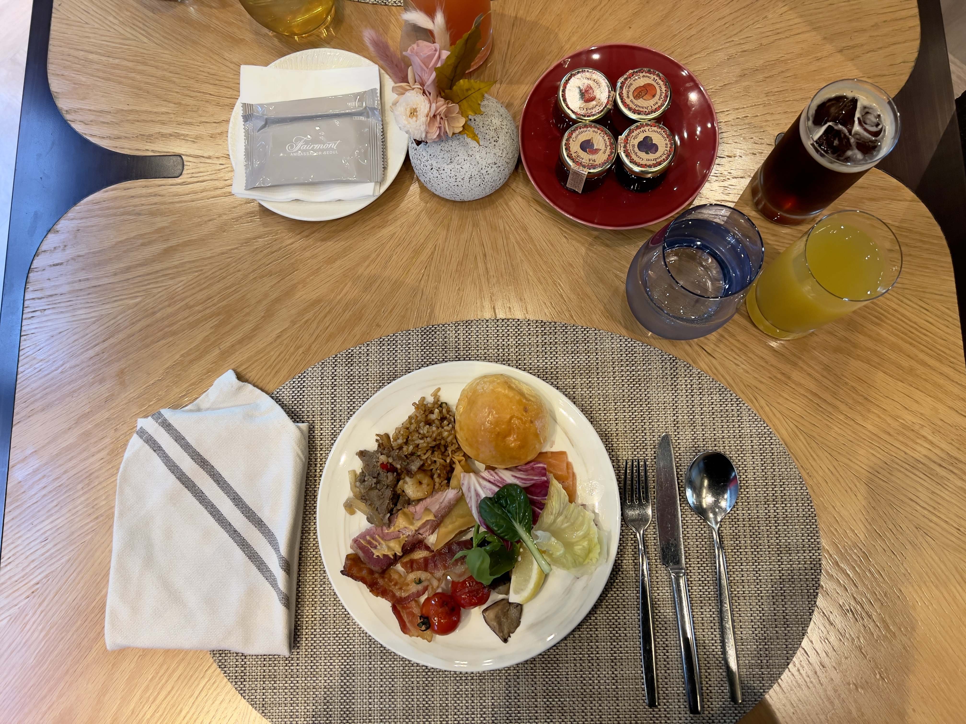 보통 페어몬트 앰배서더 서울 조식은 호텔 예약시 결제하게 되는데 1인당 약 3만원 정도 했습니다.