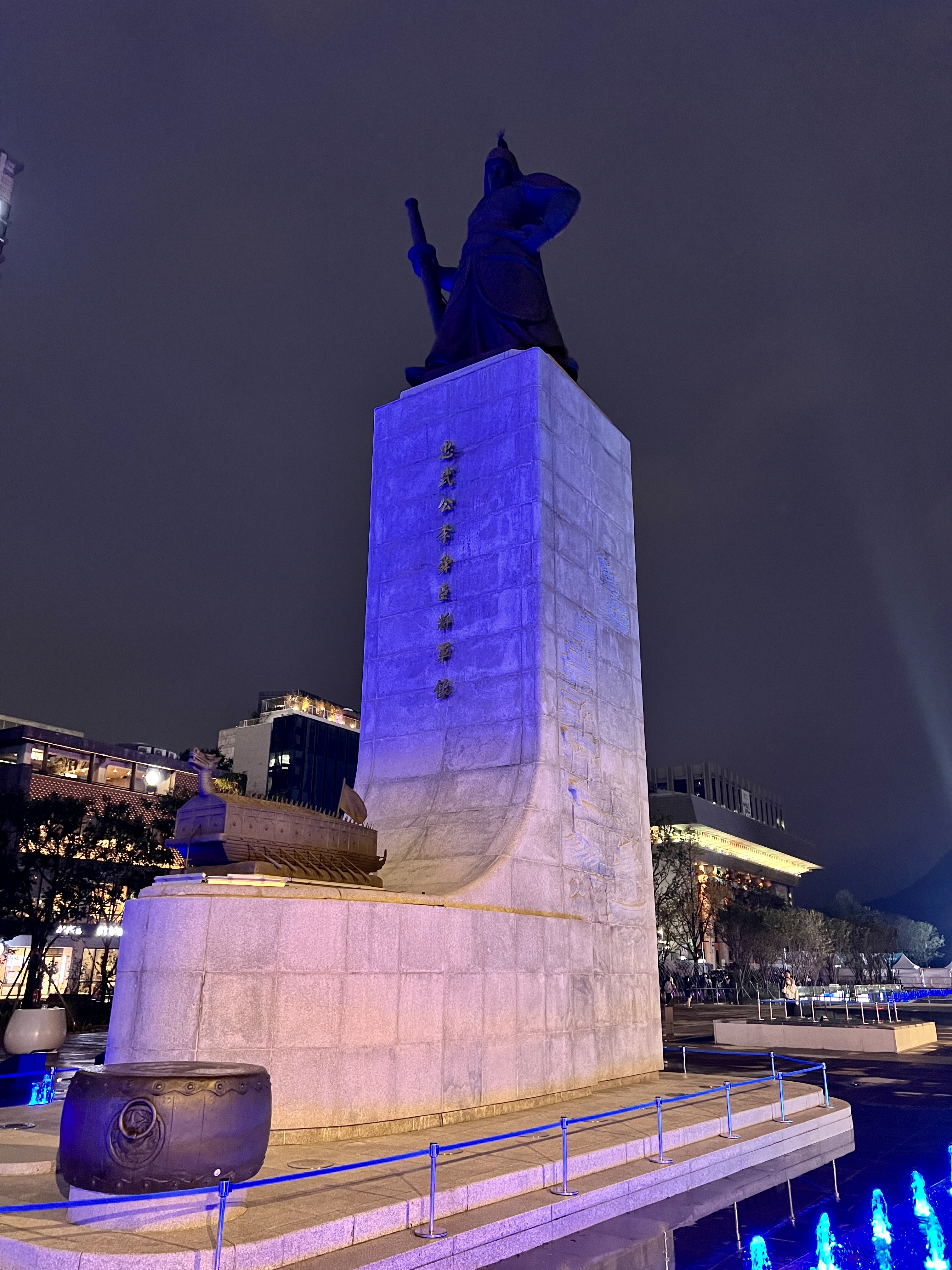경복궁 야간개장을 가는길에 새로워진 광화문에서 광화문의 상징인 이순신장군과