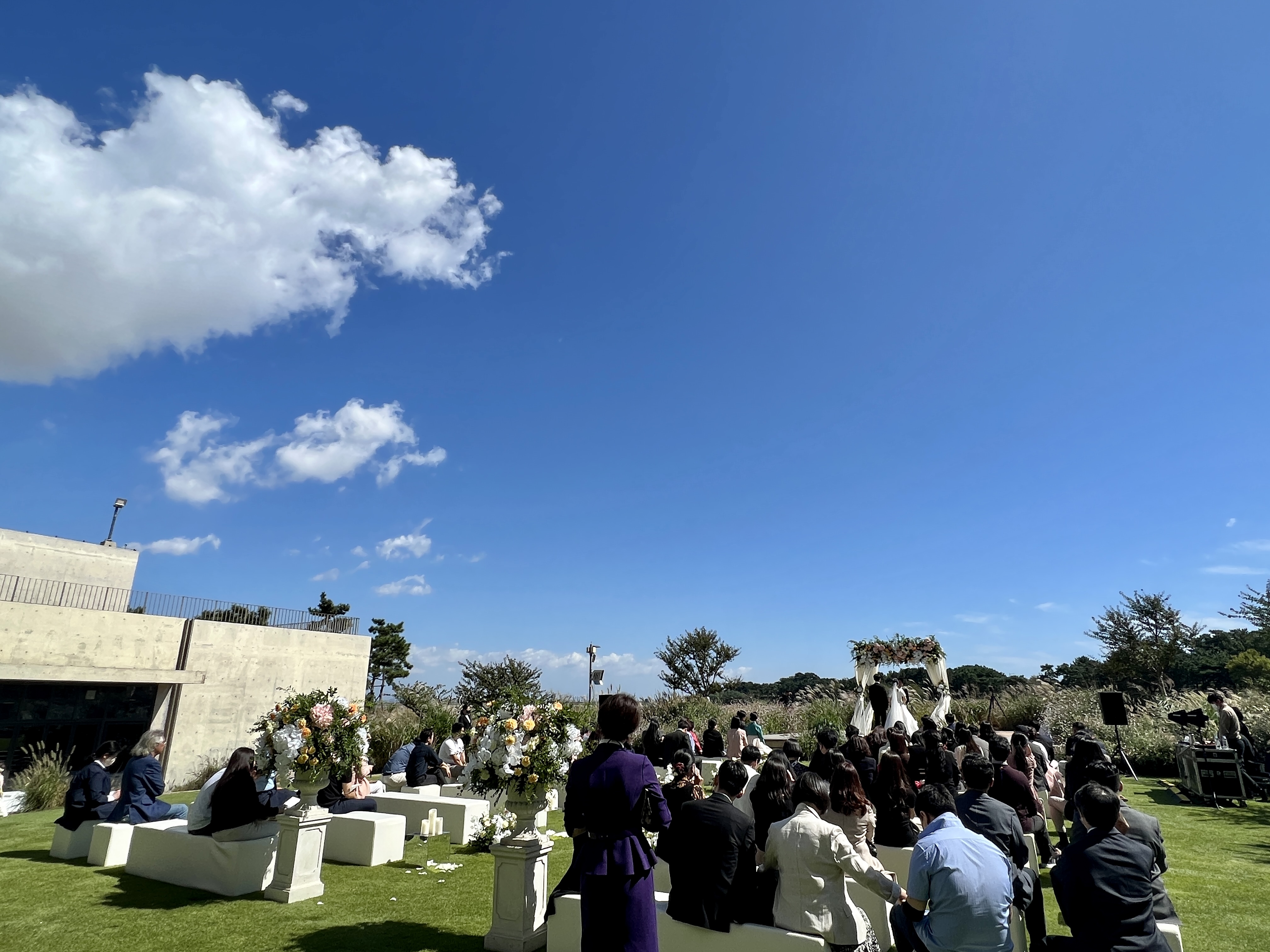 그래도 맑은 하늘과 갈대 배경 그리고 뒤로 보이는 Sea view 때문인지 야외 결혼식장이 너무 멋졌습니다.