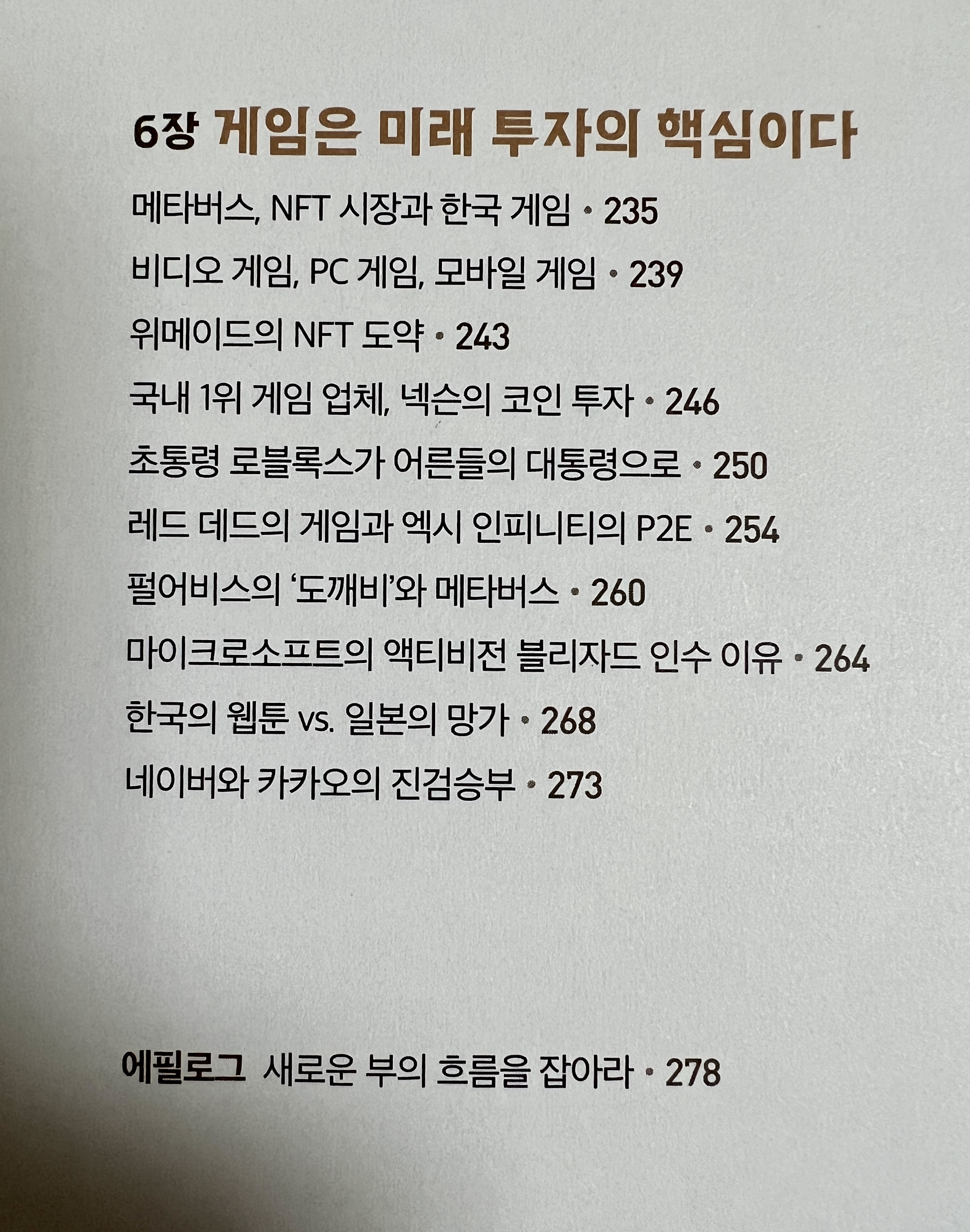 미래의 부를 위한 투자 공부는 총 6장으로 이루어져 있습니다.