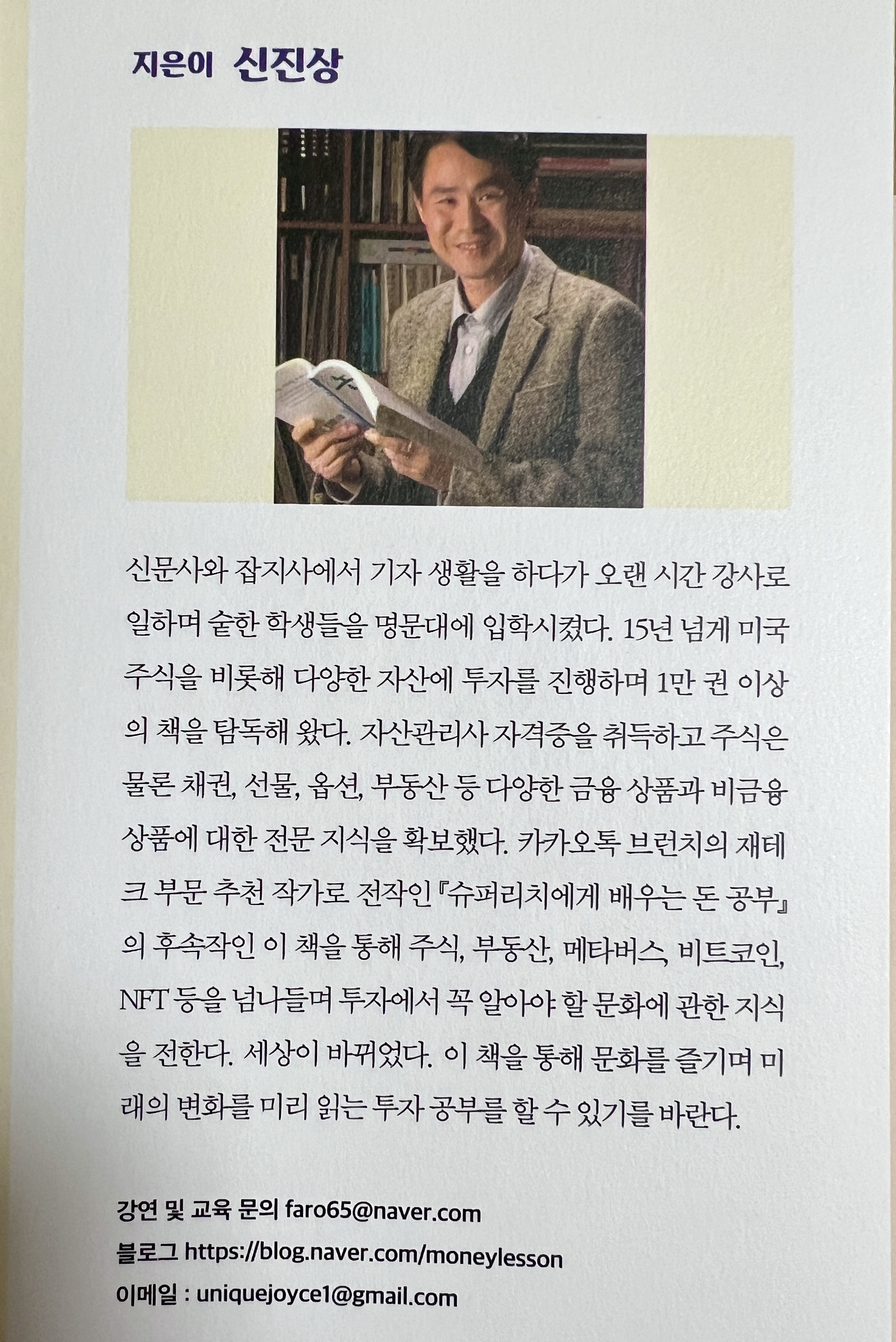 그리고 메타버스나 NFT 를 주제로 쓴 책이라 당연히 젊은 저자가 쓴 책일줄 알았는데.