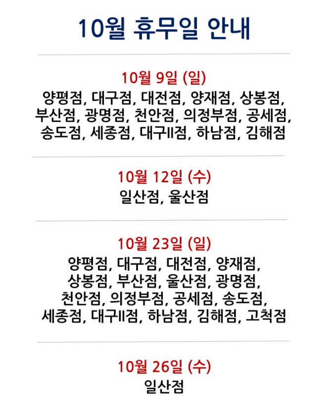 2022년 10월 홈플러스 휴무일 안내 | 홈플러스 10월 휴무일 정보