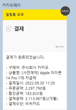 어제 9월30일 아침에 카톡으로 카카오쇼핑에 아이폰 14 사전구매 알림 톡이 오는게 아니겠습니까