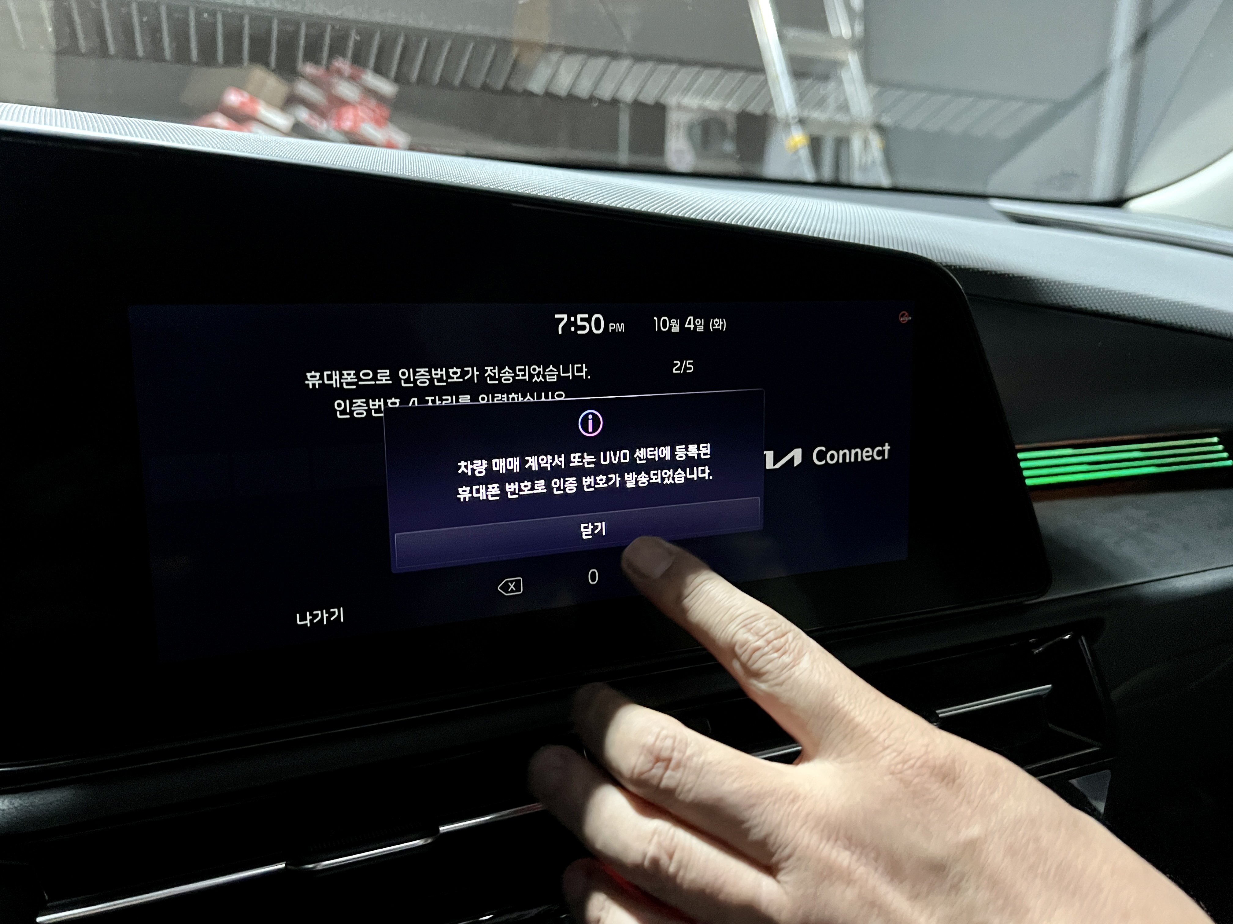 휴대폰을 개통하듯이 차량에서 제 휴대폰으로 문자를 보내 인증번호를 입력하여 휴대폰과 차를 연결하고