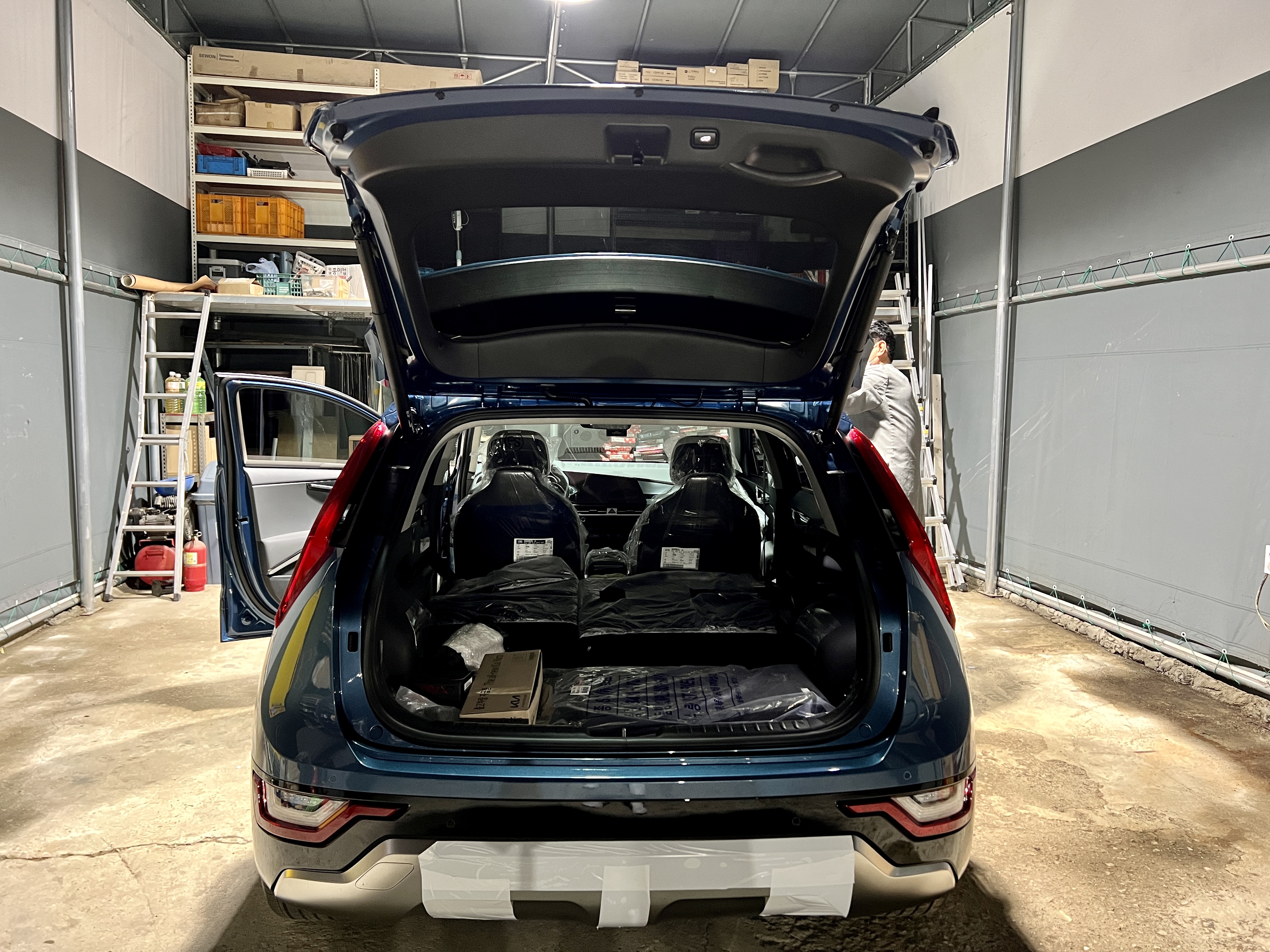 니로 하이브리드 풀옵션 모델에 기본적으로 트렁크에는 짐을 고정하여 싣을 수 있는 그물망과